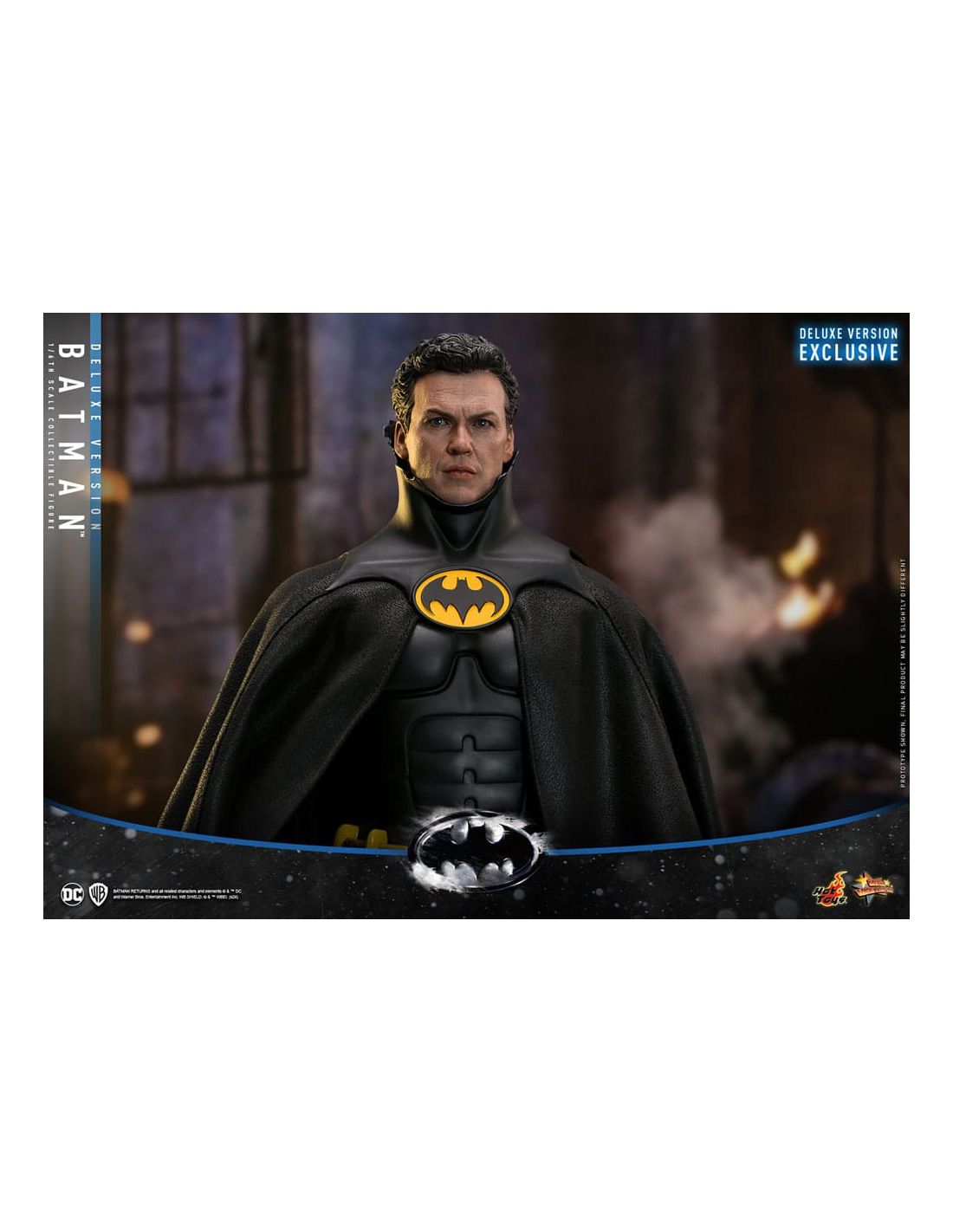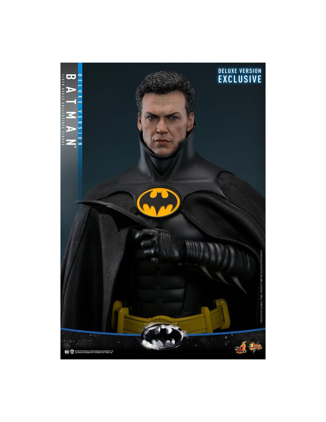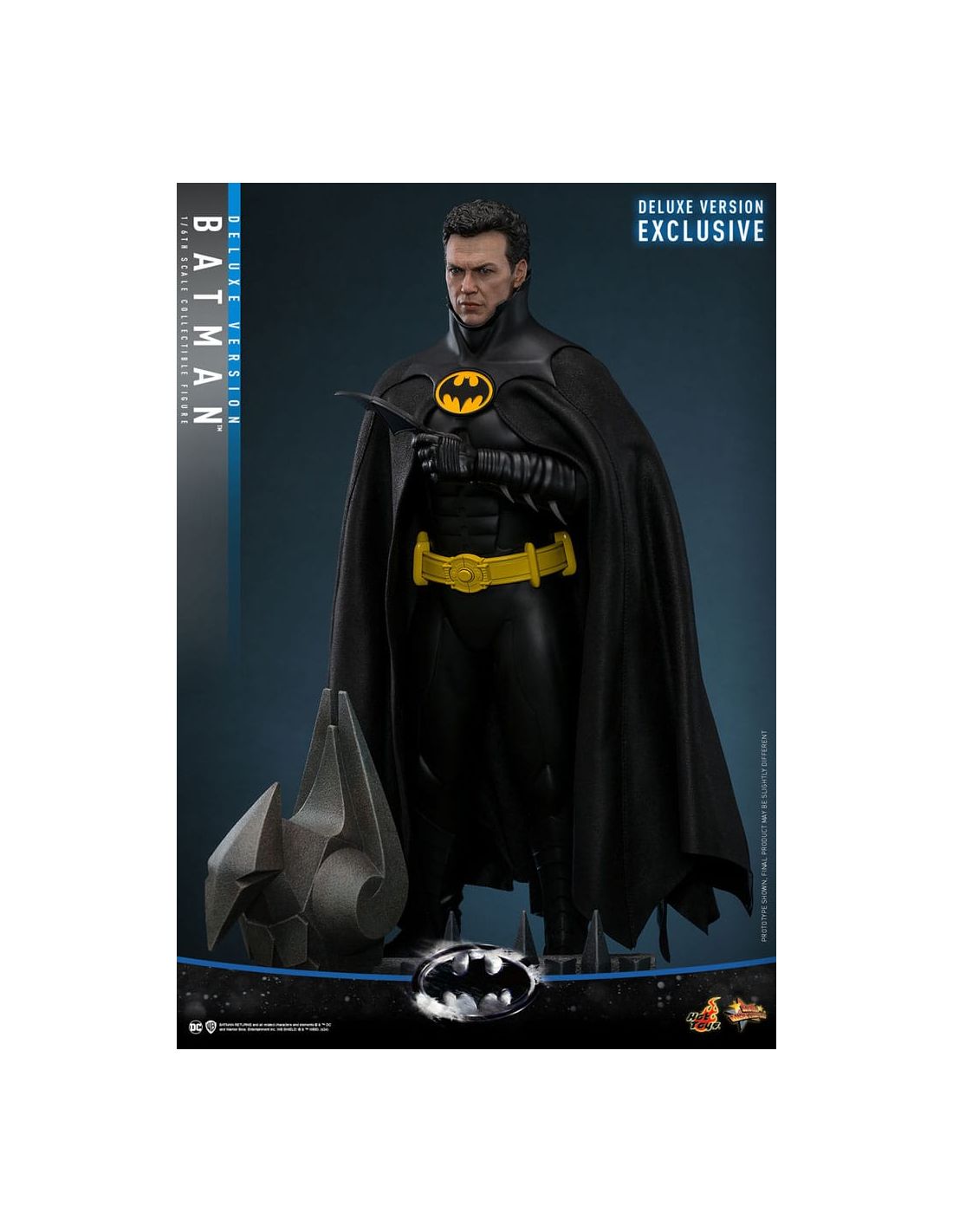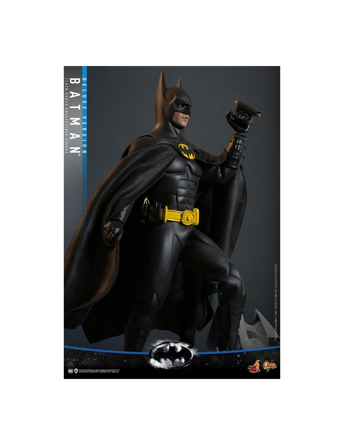 Fabricada por Hot Toys, la figura se destaca por su calidad excepcional y su atención al detalle. Desde el traje de Batman, que refleja la textura y los matices de la armadura que vemos en las películas, hasta las expresiones faciales que parecen cobrar vida, cada elemento ha sido cuidadosamente elaborado. La Deluxe Version incluye accesorios adicionales que te permitirán personalizar tu exposición, como manos intercambiables y una base temática que evoca la atmósfera oscura de Gotham City.