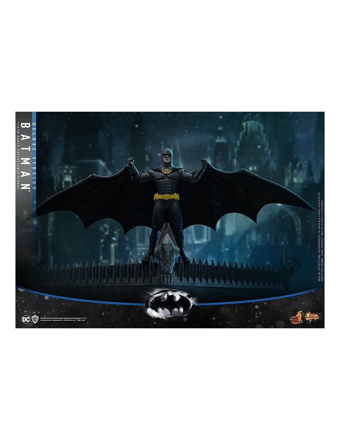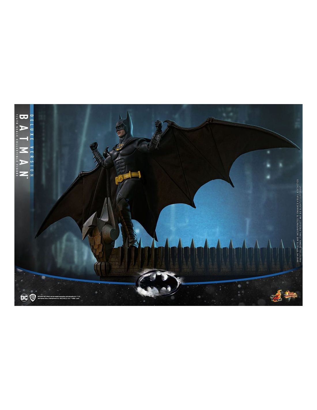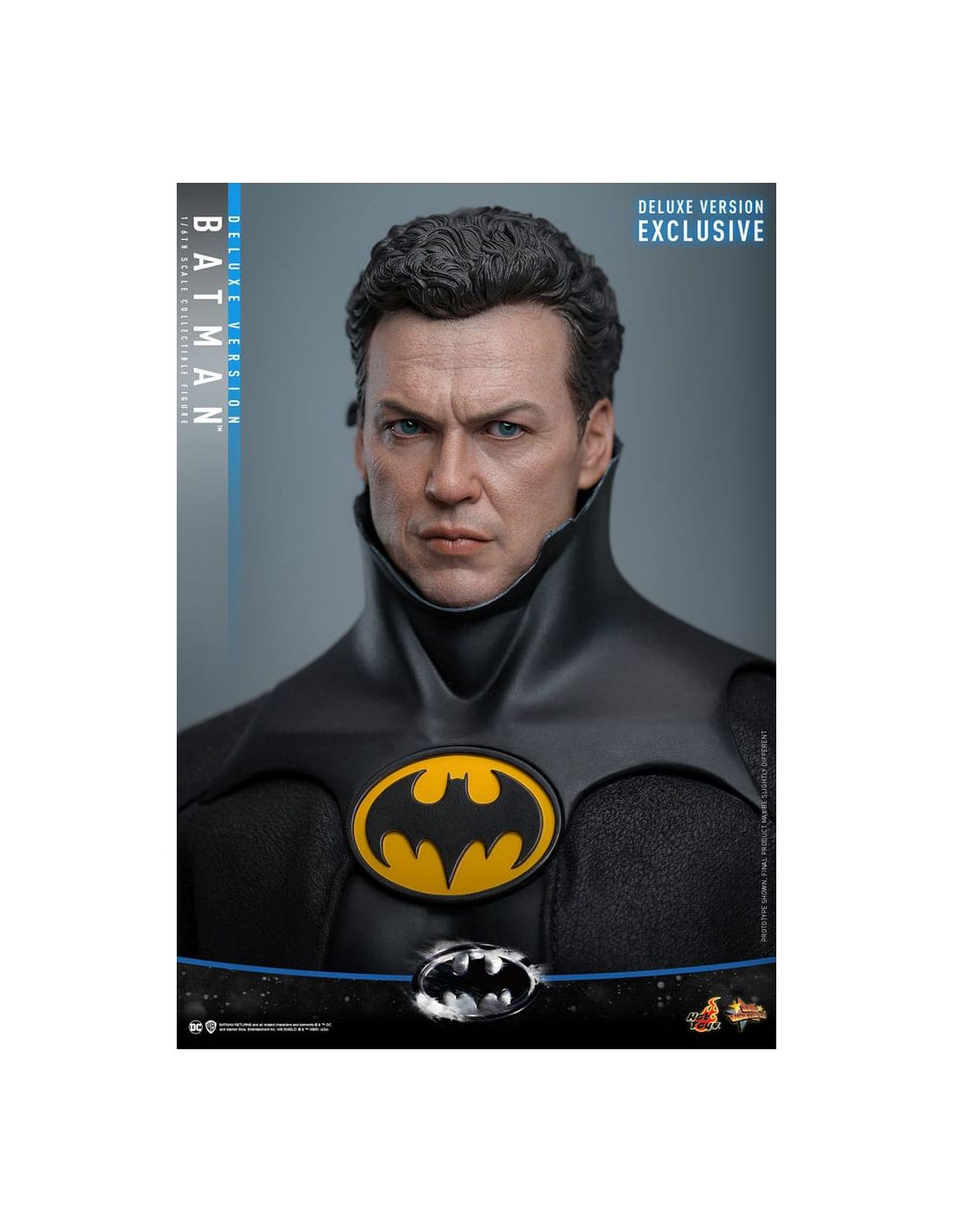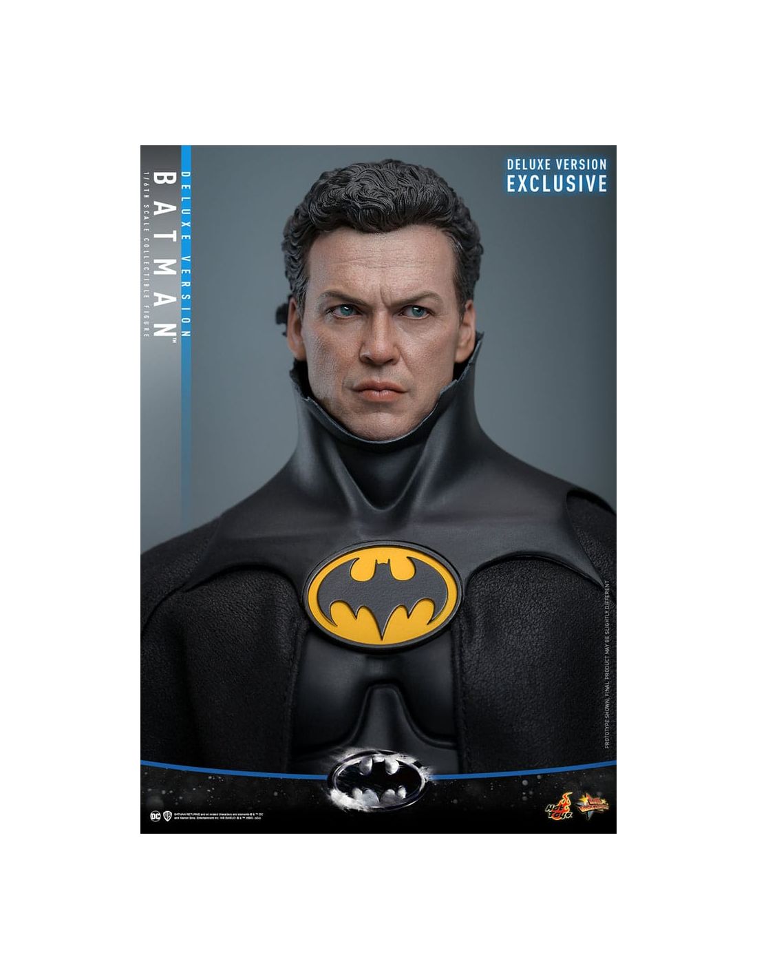 Fabricada por Hot Toys, la figura se destaca por su calidad excepcional y su atención al detalle. Desde el traje de Batman, que refleja la textura y los matices de la armadura que vemos en las películas, hasta las expresiones faciales que parecen cobrar vida, cada elemento ha sido cuidadosamente elaborado. La Deluxe Version incluye accesorios adicionales que te permitirán personalizar tu exposición, como manos intercambiables y una base temática que evoca la atmósfera oscura de Gotham City.