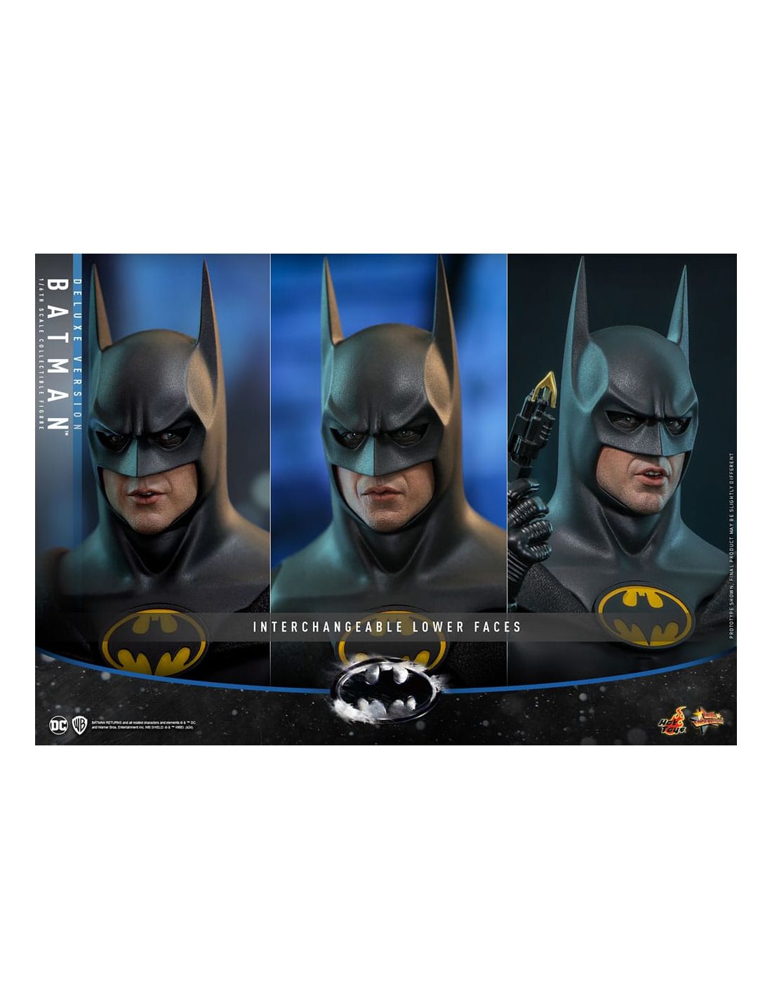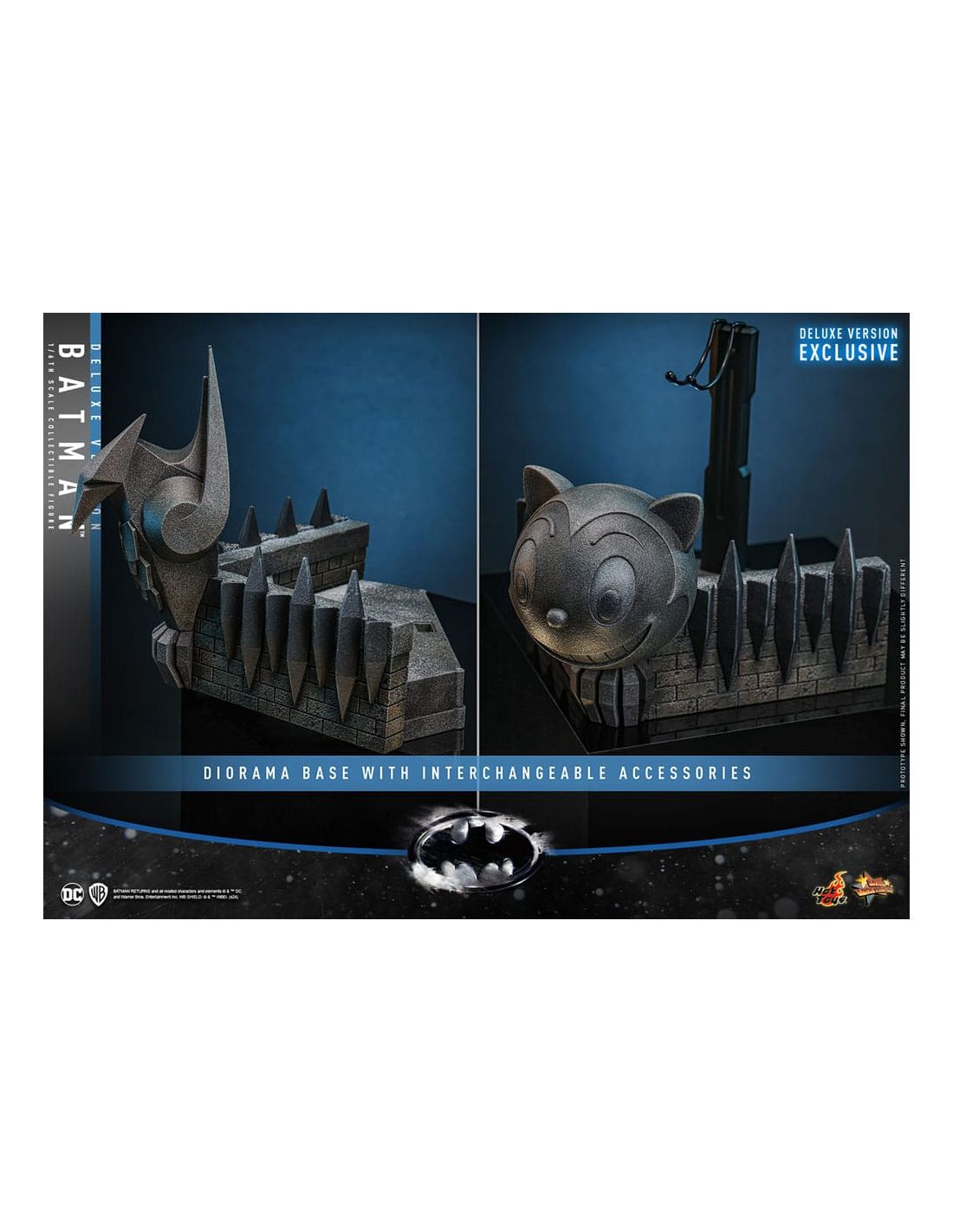 - La versión Deluxe también incluye una cabeza de Bruce Wayne, una máscara y una base de diorama.