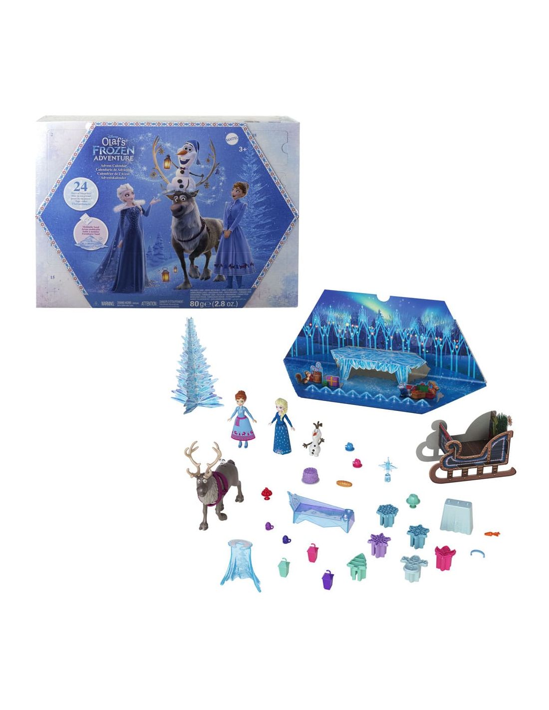Cada día de diciembre se convierte en una nueva aventura con este calendario de adviento. Las muñecas y minifiguras incluidas representan a los personajes más queridos de Frozen, como Elsa, Anna, Kristoff, Olaf y Sven. No solo son adorables, sino que también están diseñadas con gran atención al detalle, capturando la esencia de cada personaje tal como los vimos en las películas. Con cada figura, los niños pueden recrear escenas icónicas o inventar nuevas historias en el mágico mundo de Arendelle.