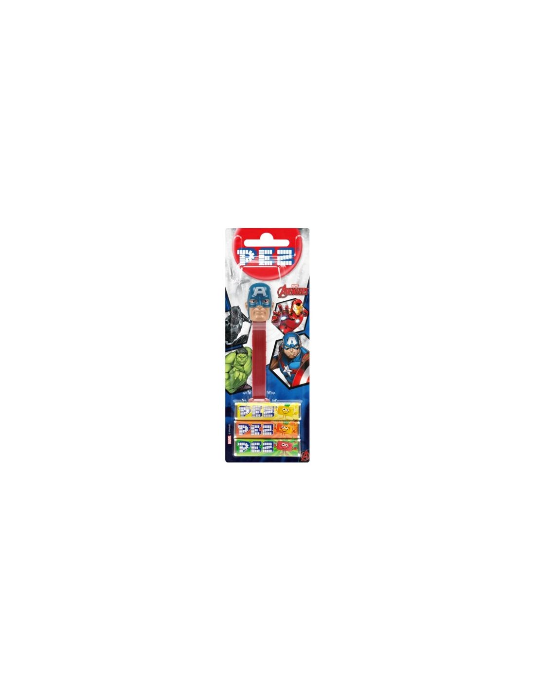 - Caramelos PEZ Marvel / Dispensador PEZ Marvel / Caramelos PEZ Capitán América / Dispensador PEZ Capitán América.