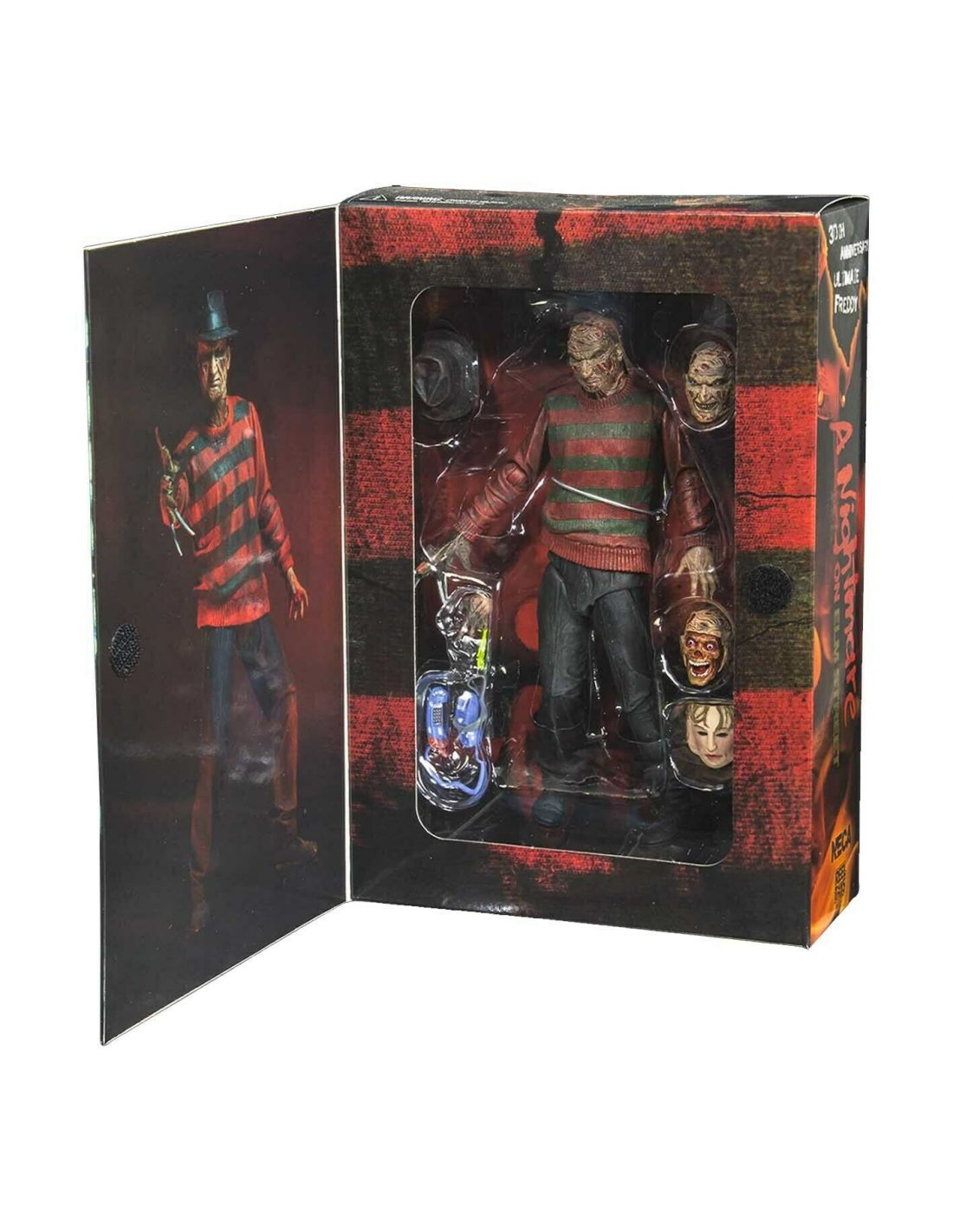 Fascinante y terrorífica figura de Freddy Krueger creada por Neca por su 30 aniversario. Si quieres un regalo friki para un o una seguidora de Freddy, esta figura Freddy Krueger conmemorativa de 18 cm es perfecta.