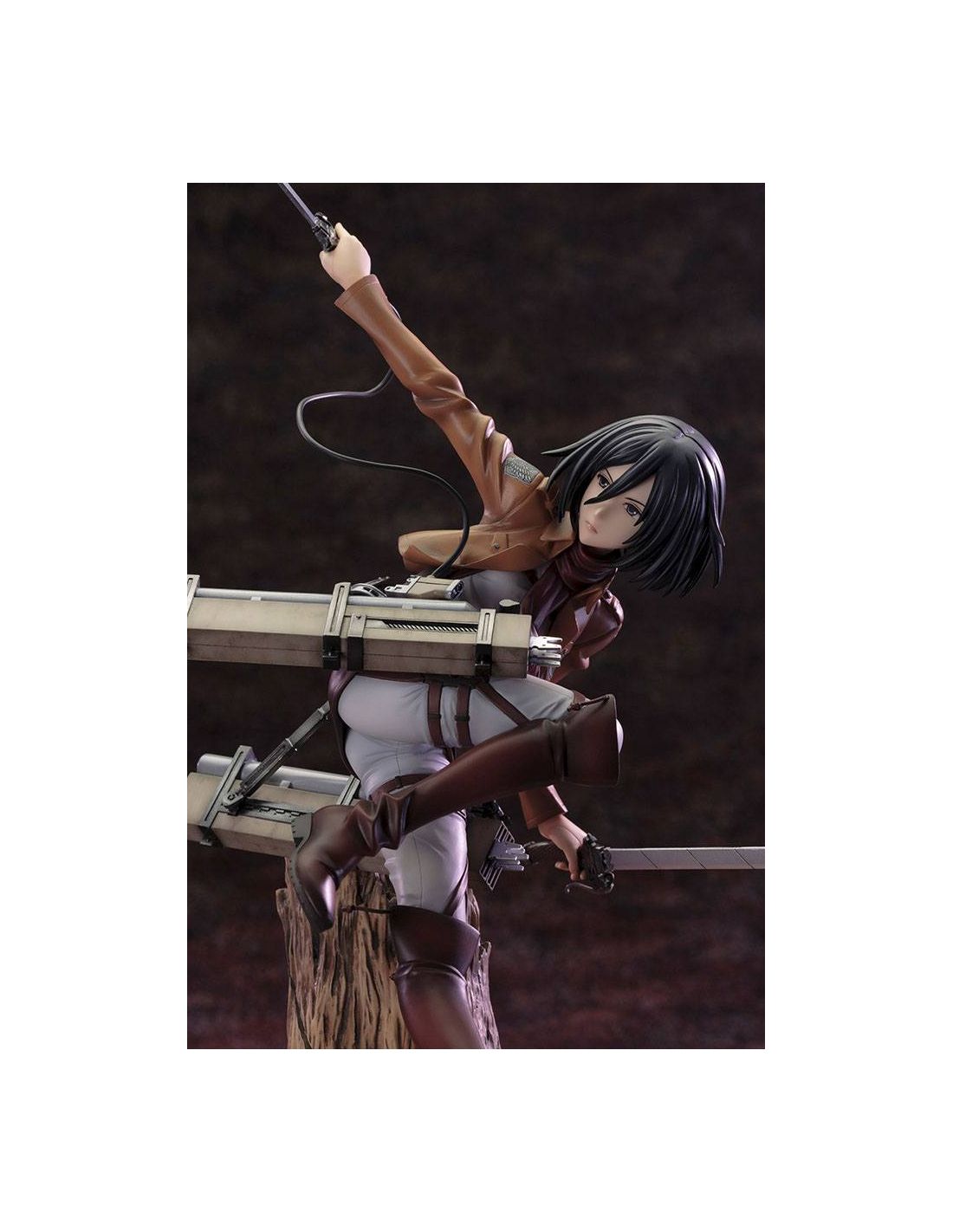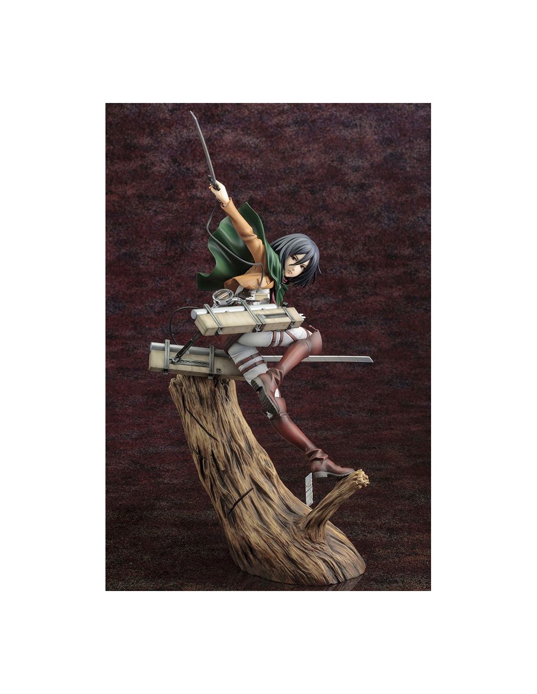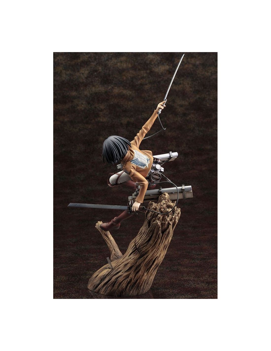 Impresionante figura de Mikasa de Ataque a los titanes fabricada por Kotobukiya. En ella podrás ver a Mikasa en pose de batalla subida a un árbol, sin duda, un regalo excepcional para un o una fan del anime.