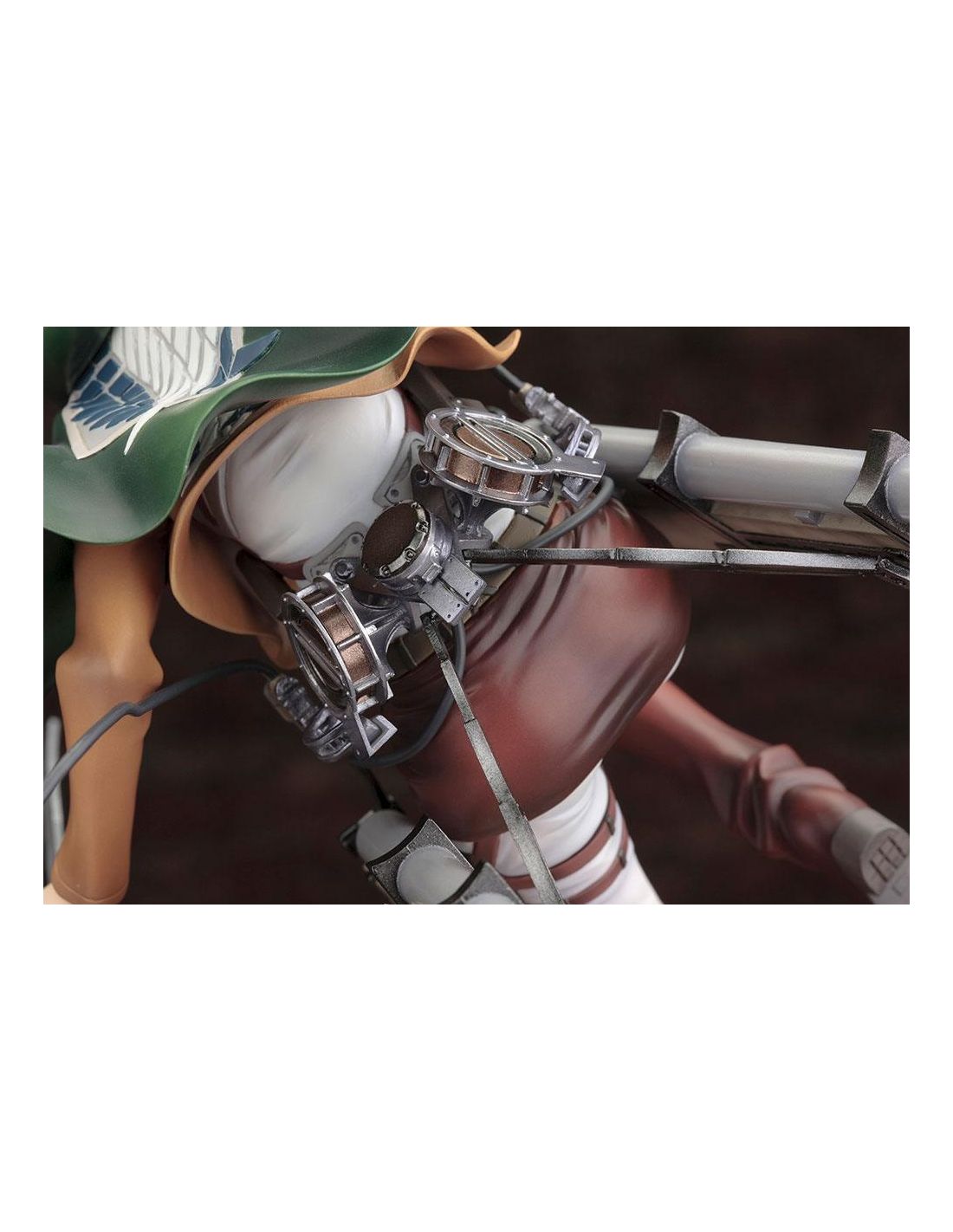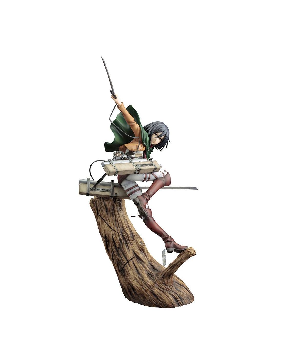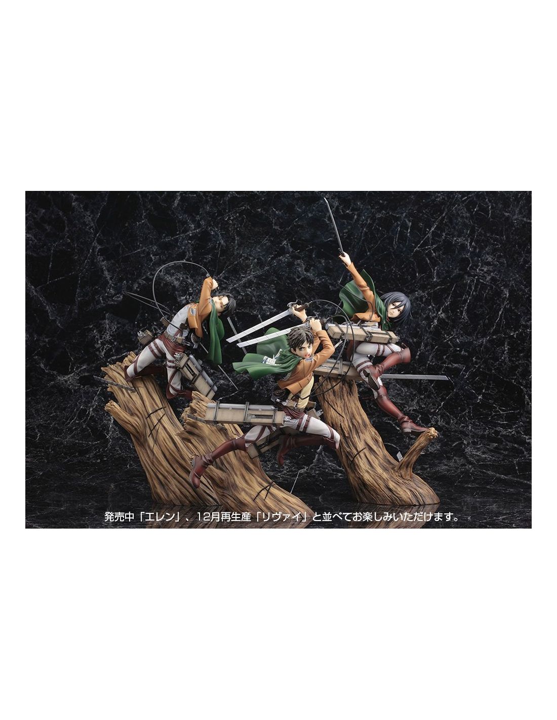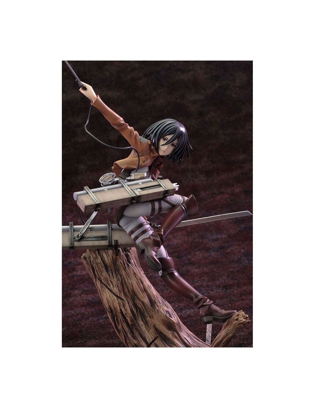 Impresionante figura de Mikasa de Ataque a los titanes fabricada por Kotobukiya. En ella podrás ver a Mikasa en pose de batalla subida a un árbol, sin duda, un regalo excepcional para un o una fan del anime.