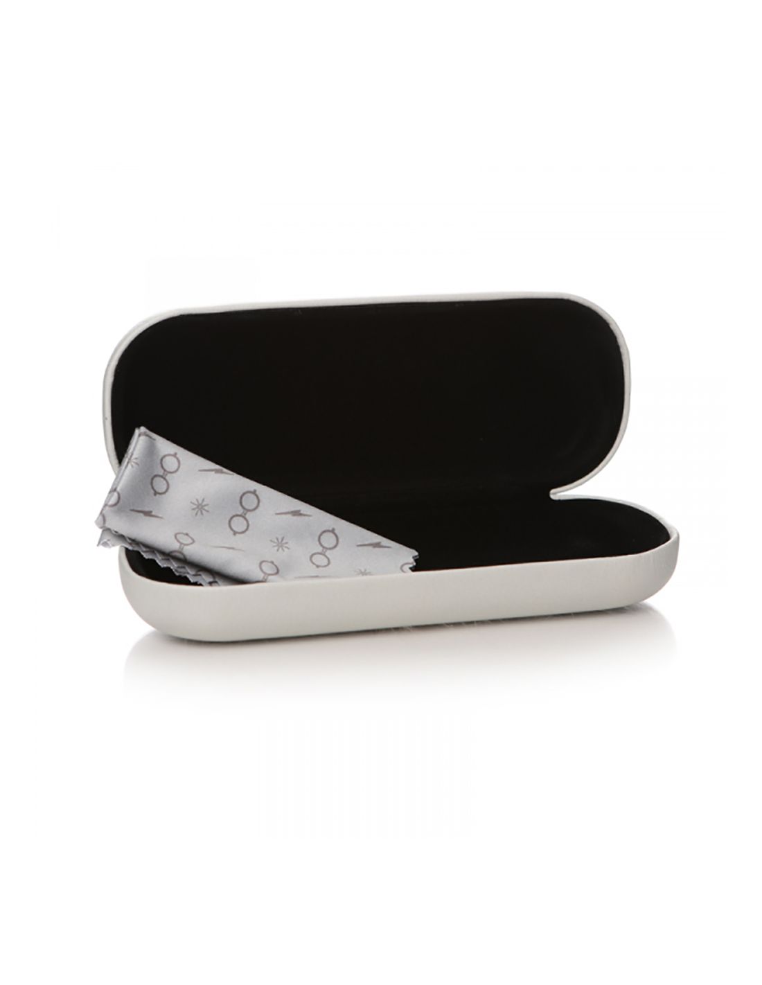 Bonita funda para gafas con el logo del rayo y las gafas de Harry Potter antes de que Hermione Granger les aplicara el hechizo Oculus Reparo en el Hogwarts Express.