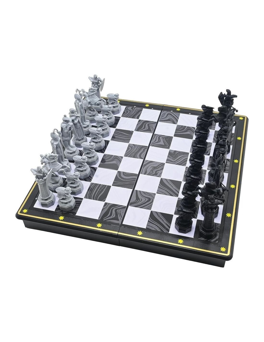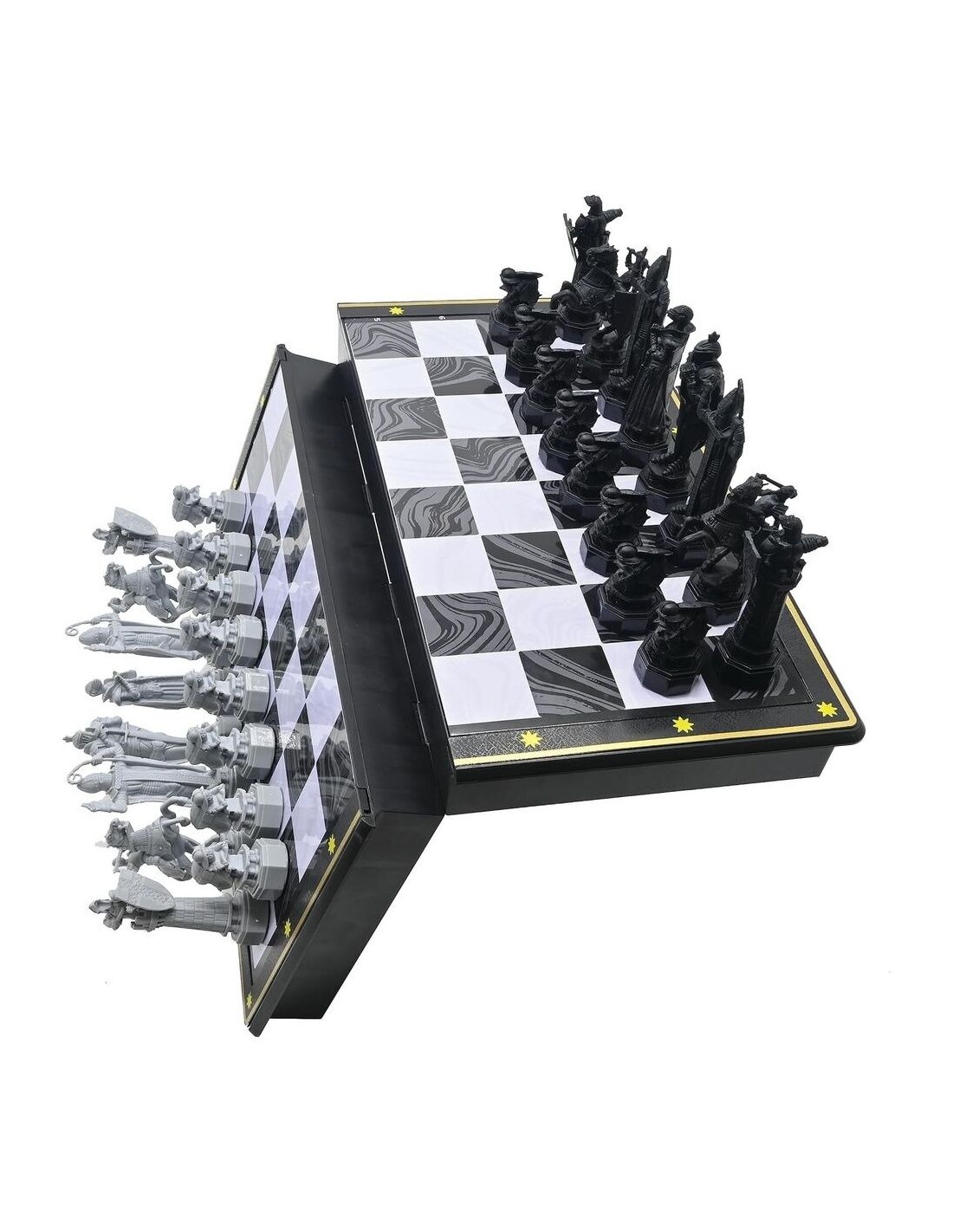 Diseñado para los verdaderos fanáticos, este ajedrez magnético no solo es visualmente impresionante, sino que también es funcionalmente mágico. Gracias a sus piezas magnéticas, puedes jugar en cualquier superficie sin preocuparte de que tus trepidantes movimientos de varita derriben las piezas. Ya sea que estés viajando en el Expreso de Hogwarts o esperando tu carta de aceptación, este juego de ajedrez se mantendrá firme, listo para cualquier desafío.