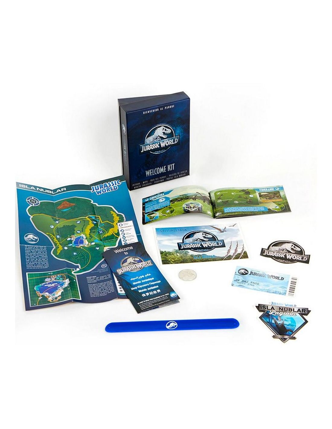 Genial regalo para los fanáticos del mundo de Jurassic Park y su secuela Jurassic World. Si te fascinan los dinosaurios, este Kit de Bienvenida Jurassic World lleno de réplicas de la película es para ti.