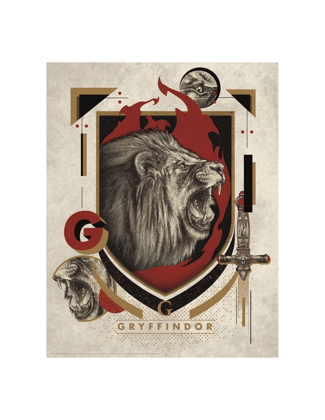 Litografía de la casa Gryffindor, con el león y la espada de Godric Gryffindor. Un regalo espectacular para coleccionistas y fans de Gryffindor y de Harry Potter.