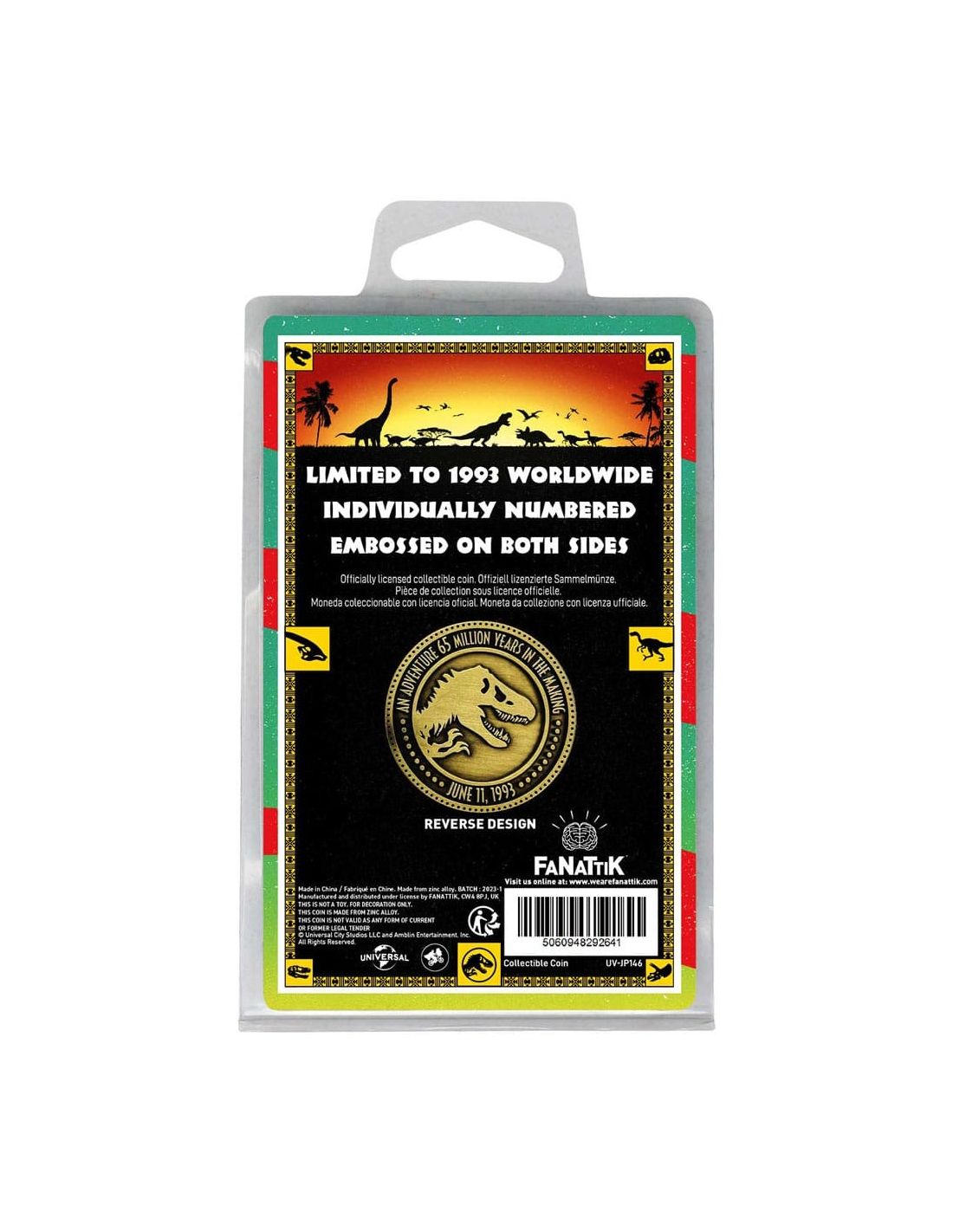 En resumen, nuestra moneda de edición limitada de Dr. Ian Malcolm de Jurassic Park es una adición imprescindible para cualquier coleccionista de la película. Ofrecemos precios asequibles y envíos exprés de 24 horas desde nuestra tienda online de merchandising oficial y licenciado. ¡Compra Jurassic Park barato y haz de esta moneda un regalo perfecto para cualquier fanático de la película!