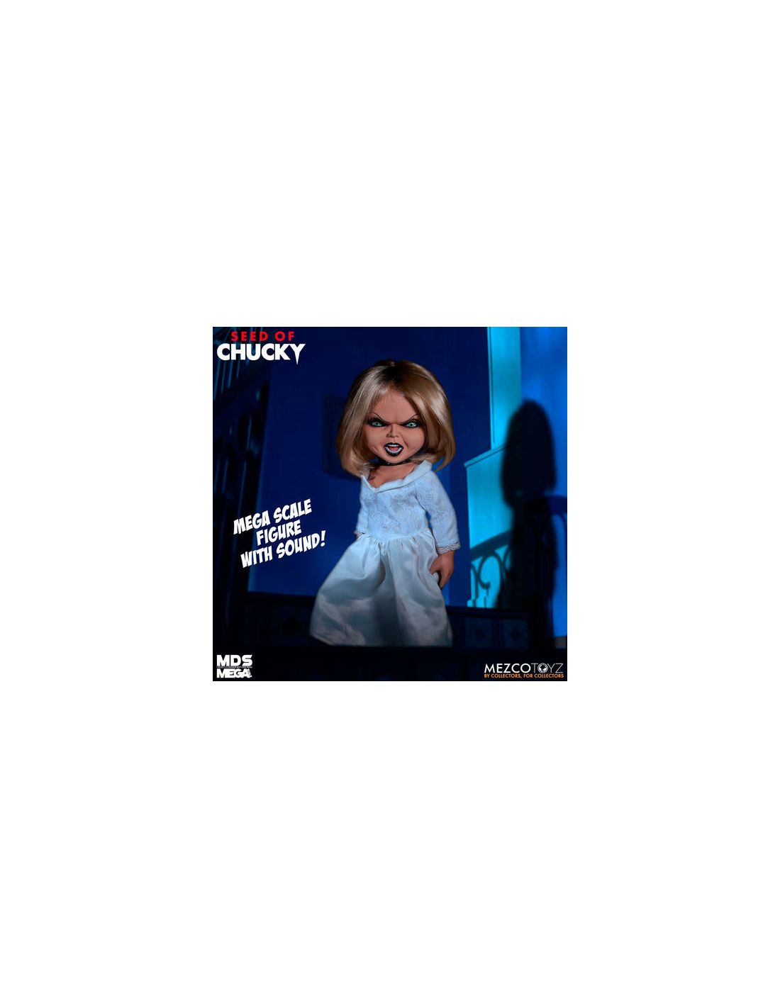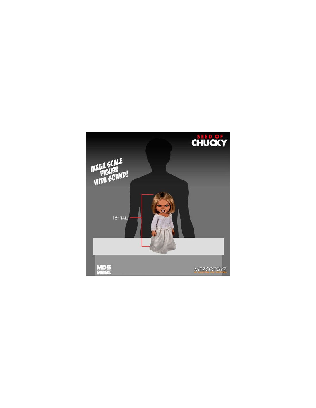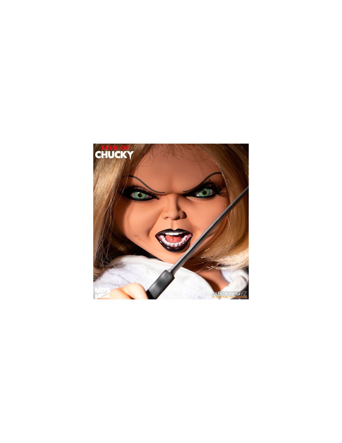 Hoy te presentamos la terrorífica muñeca de Tiffany Valentine, por muchos conocida como la novia de Chucky. Con un tamaño de 38 centímetros y con sonidos reales (ingles) esta muñeca será el regalo preferido de los amantes del cine de terror con toques humorísticos.