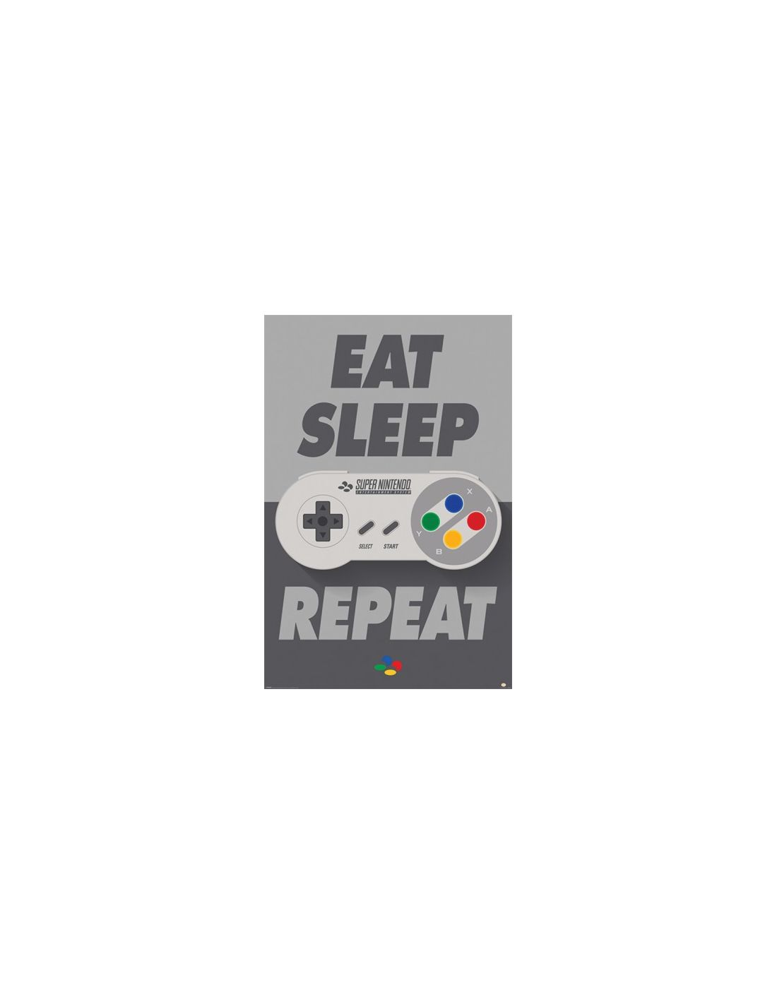 Póster para old school gamers con el mando de la SNES o Super Nintendo, la consola que nos trajo Super Mario World o Street Fighter II. Si tienes que hacer un regalo a fans de Nintento, ni te lo pienses.