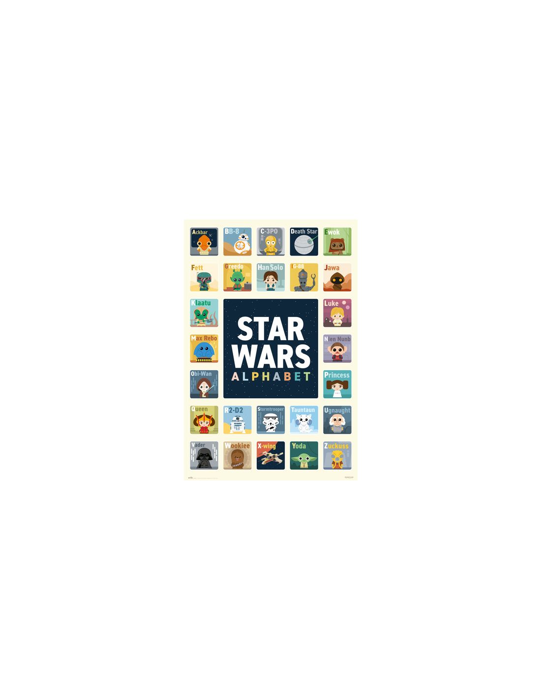 Póster Star Wars Alphabet, un póster friki y muy divertido con un abecedario galáctico digno de colgar en la pared. Un regalo genial para fans de Star Wars, grandes y pequeños.