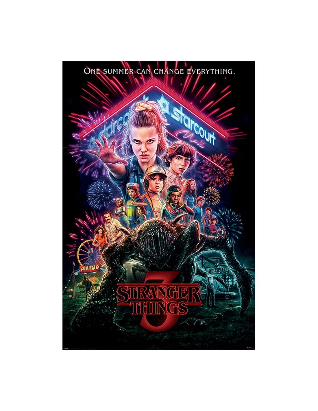 En este póster de gran tamaño de la tercera temporada de Stranger Things encontramos a toda la pandilla en el Starcourt Mall, el centro comercial donde transcurre la acción y dónde se encuentra Scoops Ahoy!, la heladería donde trabajan Steve y Robin. Will Byers, Eleven el jefe Hopper y toda la pandilla, como si de los Goonies se trataran, van a desvelar un misterio que hace peligrar la paz en Hawkins.