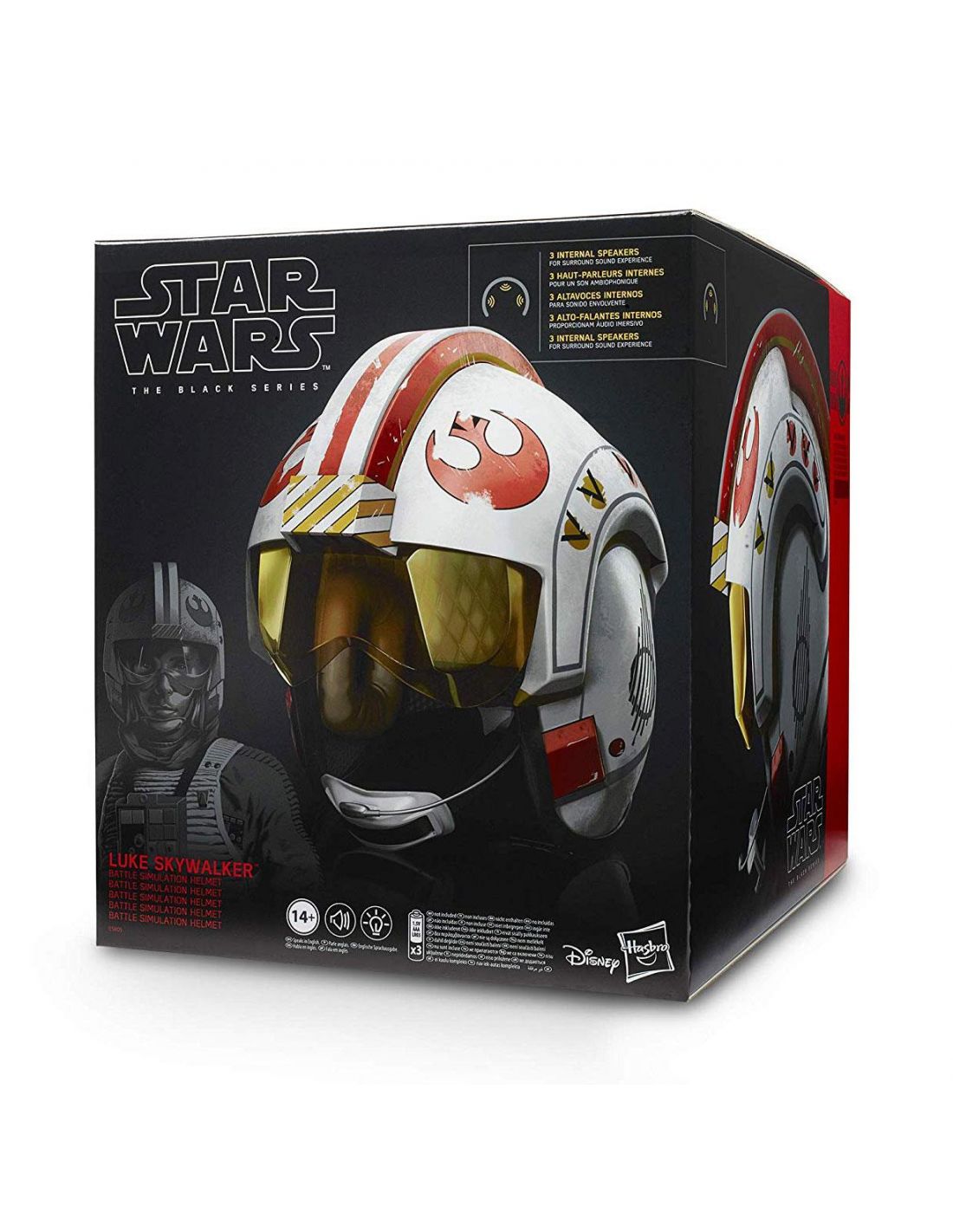 Réplica electrónica del casco de Luke Skywalker fabricada por Hasbro con efectos de sonido y de luz, sin duda, un regalo increíble para cualquier coleccionista del universo Star Wars.