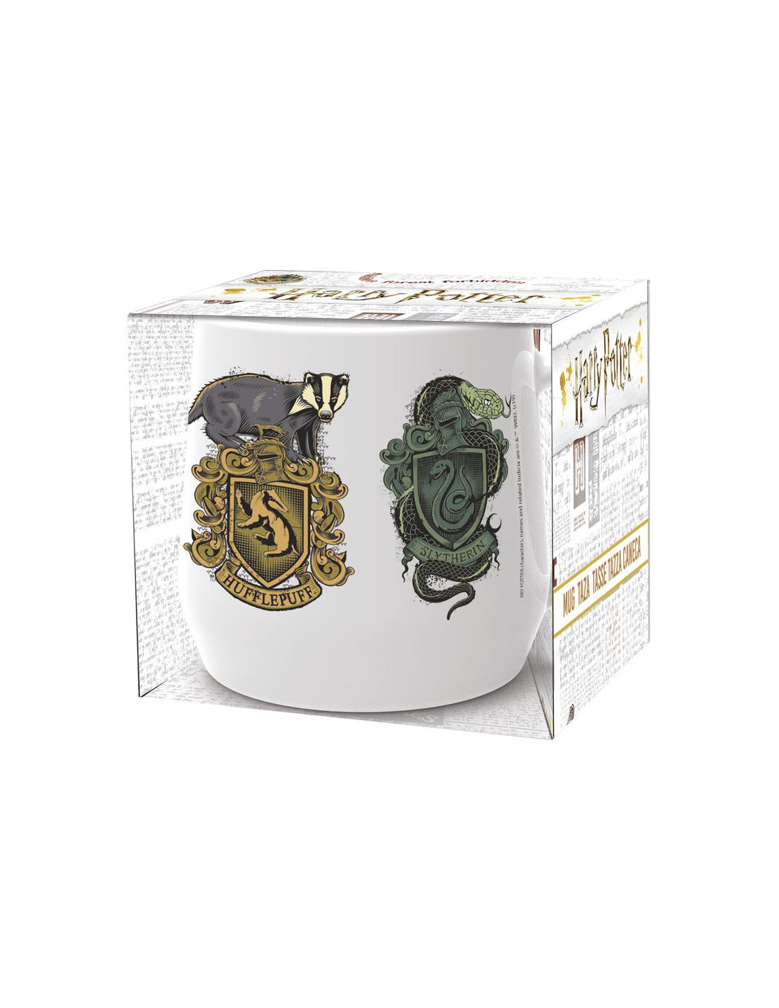 Taza con los escudos de Hufflepuff, Slytherin, Ravenclaw i Gryffindor, ideal como regalo de Harry Potter a fans de las cuatro casas de Hogwarts. Albus Dumbledore ya la ha pedido.