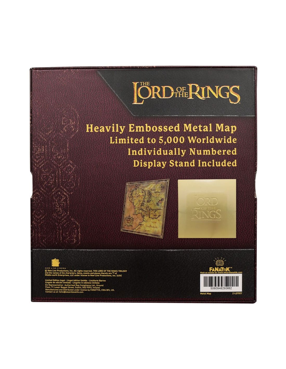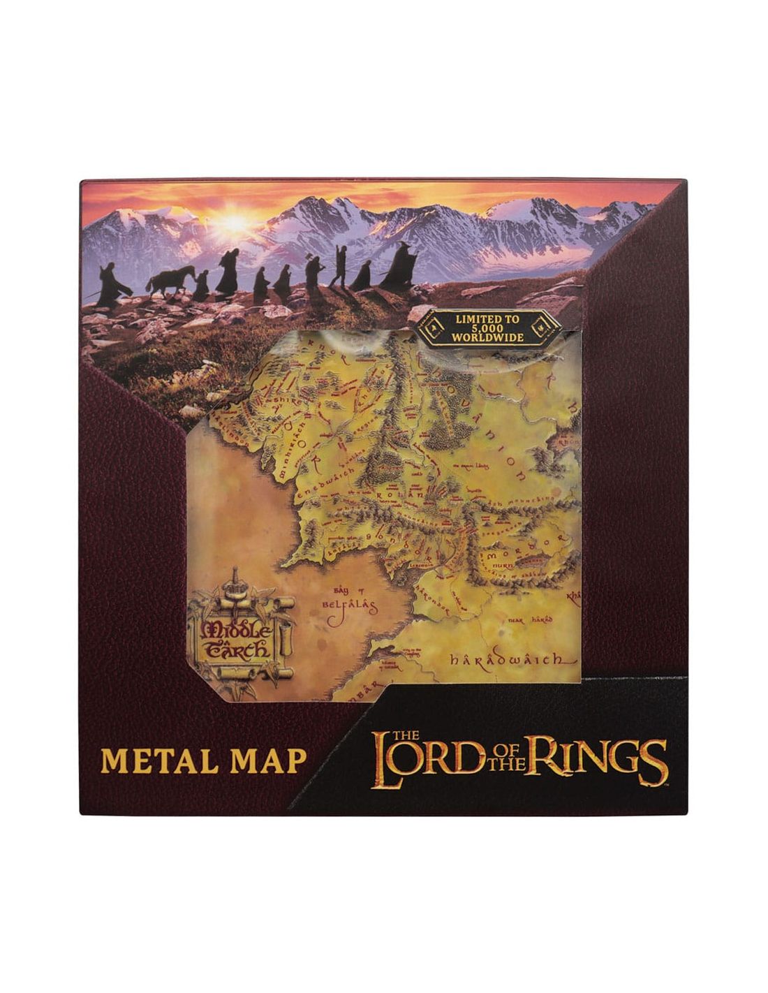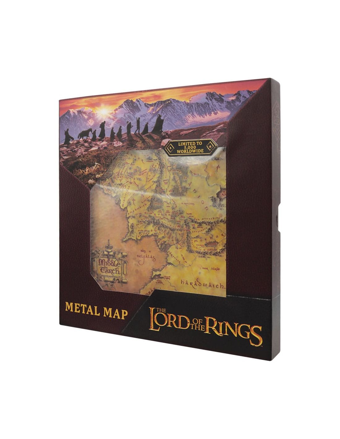 Colecciona esta impresionante réplica del mapa de la Tierra Media de El Señor de los Anillos en metal de alta calidad. Esta edición limitada a 5000 piezas es perfecta para los verdaderos fans de la saga de Tolkien.