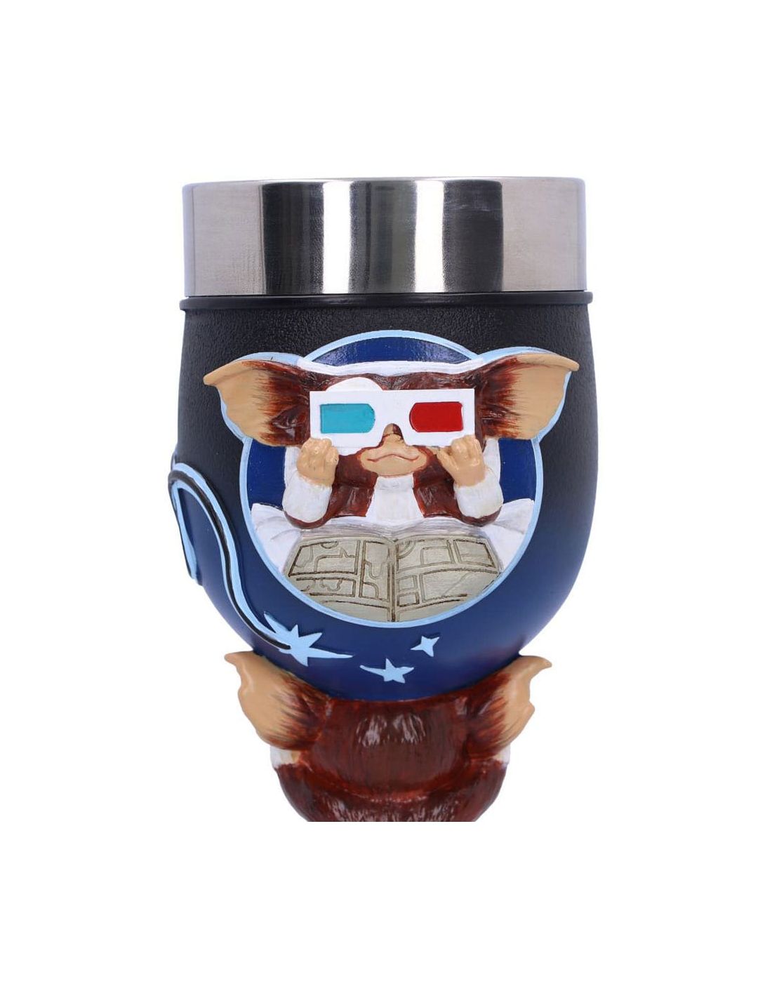 Este cáliz pintado a mano es una figura de Gremlins que representa al simpático Gizmo. Fabricado con poliresina de alta calidad, mide aproximadamente 19,5 cm y es un producto oficial y licenciado. ¡Ideal para coleccionistas y fans de la saga!