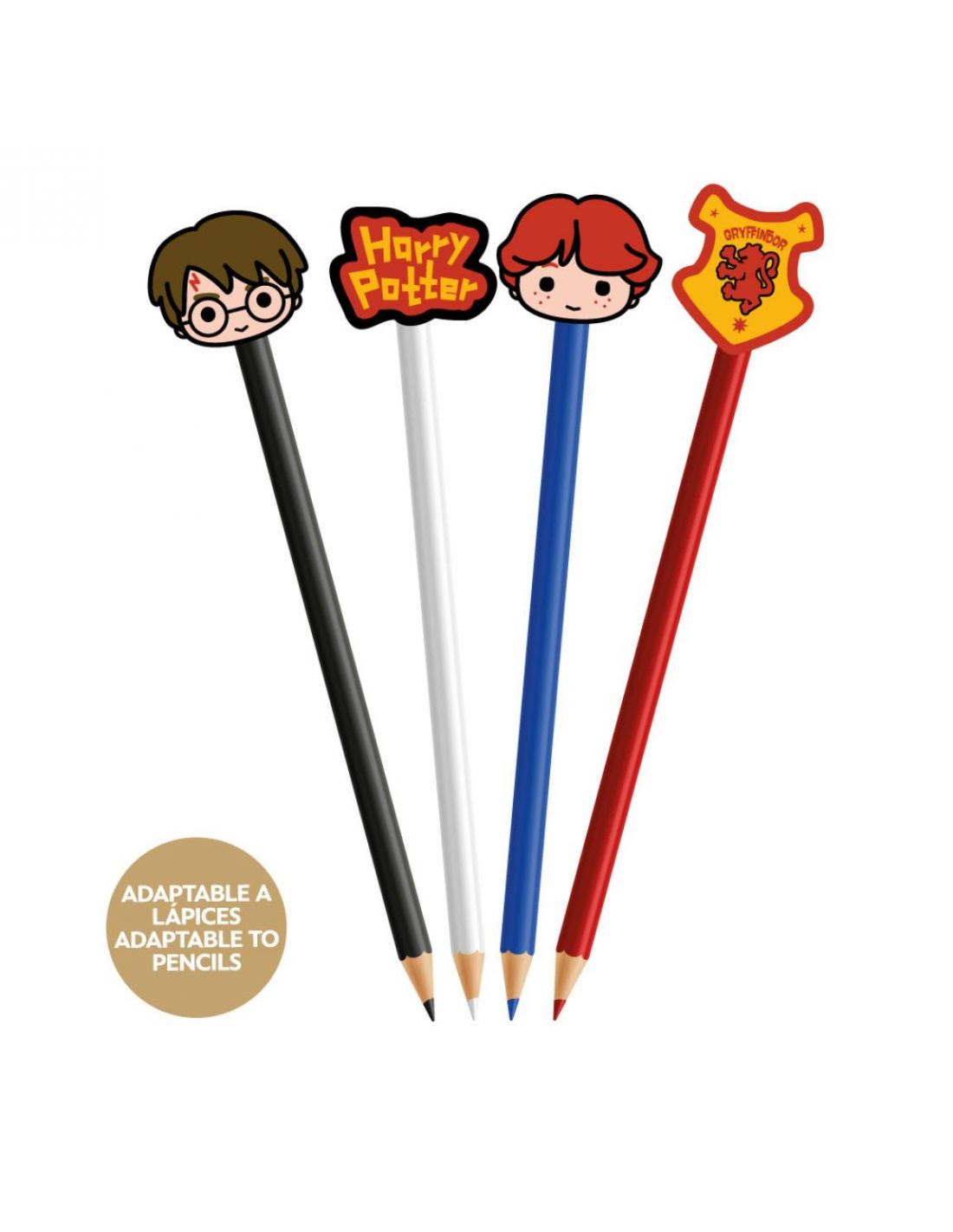 Pack de 4 gomas de borrar Harry Potter adaptables a lápiz, un divertido regalo para fans de Harry Potter que disfruten coleccionando artículos de papelería friki.