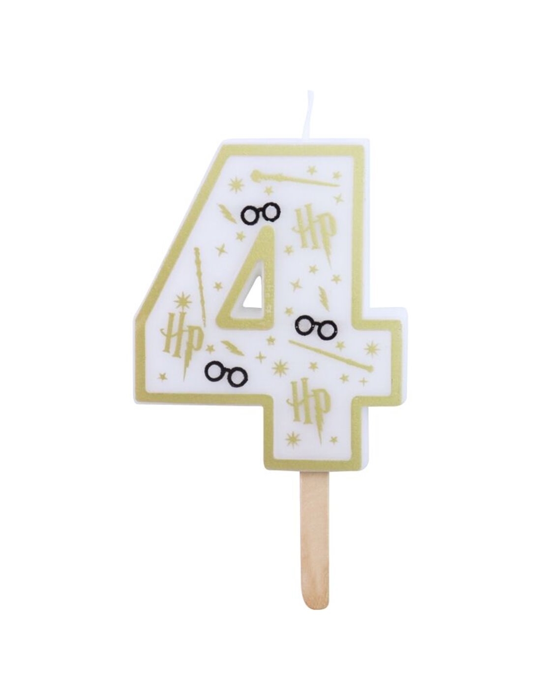 Vela de cumpleaños número 4 (Harry Potter blanco y dorado) 7 cm
