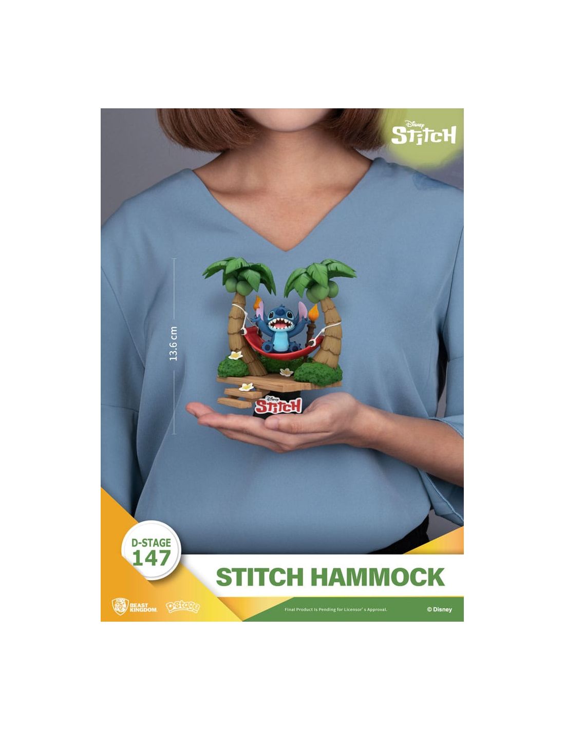 Este diorama de Stitch en la hamaca no solo es perfecto para coleccionistas de artículos de Lilo & Stitch, sino que también es ideal para decorar habitaciones infantiles, salas de juegos e incluso oficinas, llevando un pedazo de la magia de Disney a cualquier lugar. Su tamaño compacto de 13 cm lo hace versátil y fácil de colocar en cualquier superficie, convirtiéndolo en el centro de atención sin ocupar demasiado espacio. ¡Es un regalo perfecto para fans de todas las edades!