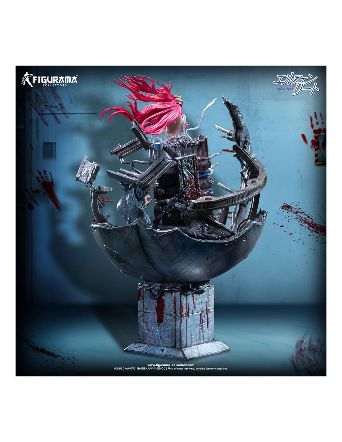 Además, la base de la estatua está diseñada para complementar a Lucy, evocando la atmósfera de la serie. Con elementos que recuerdan los entornos oscuros y melancólicos de Elfen Lied, esta base no solo proporciona estabilidad, sino que también añade un toque extra de inmersión para quienes conocen la historia. Es como si Lucy estuviera lista para saltar de su mundo de ficción a tu hogar.