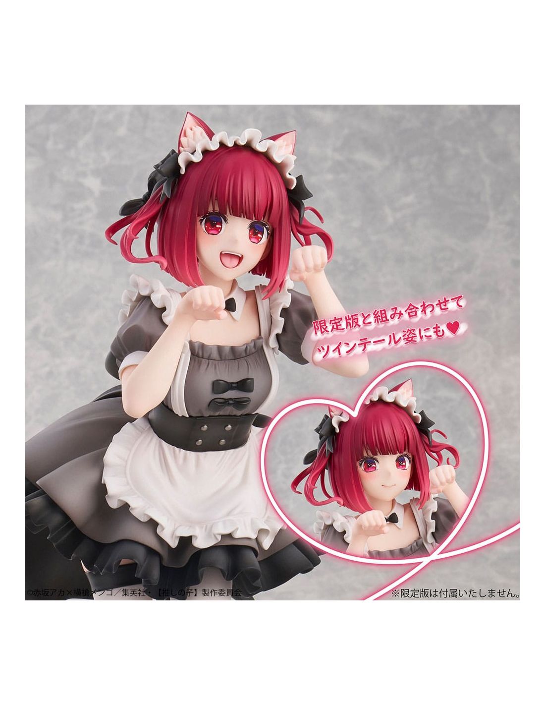 Kana Arima, la talentosa y carismática protagonista, se presenta en una versión única: ¡como una adorable maid con orejas de gato! Esta figura captura su esencia juguetona y encantadora, con un diseño que resalta tanto su atuendo como su expresión facial. Cada detalle ha sido cuidadosamente elaborado, desde las delicadas arrugas de su uniforme hasta los suaves matices de su cabello, lo que la convierte en una pieza digna de cualquier colección.