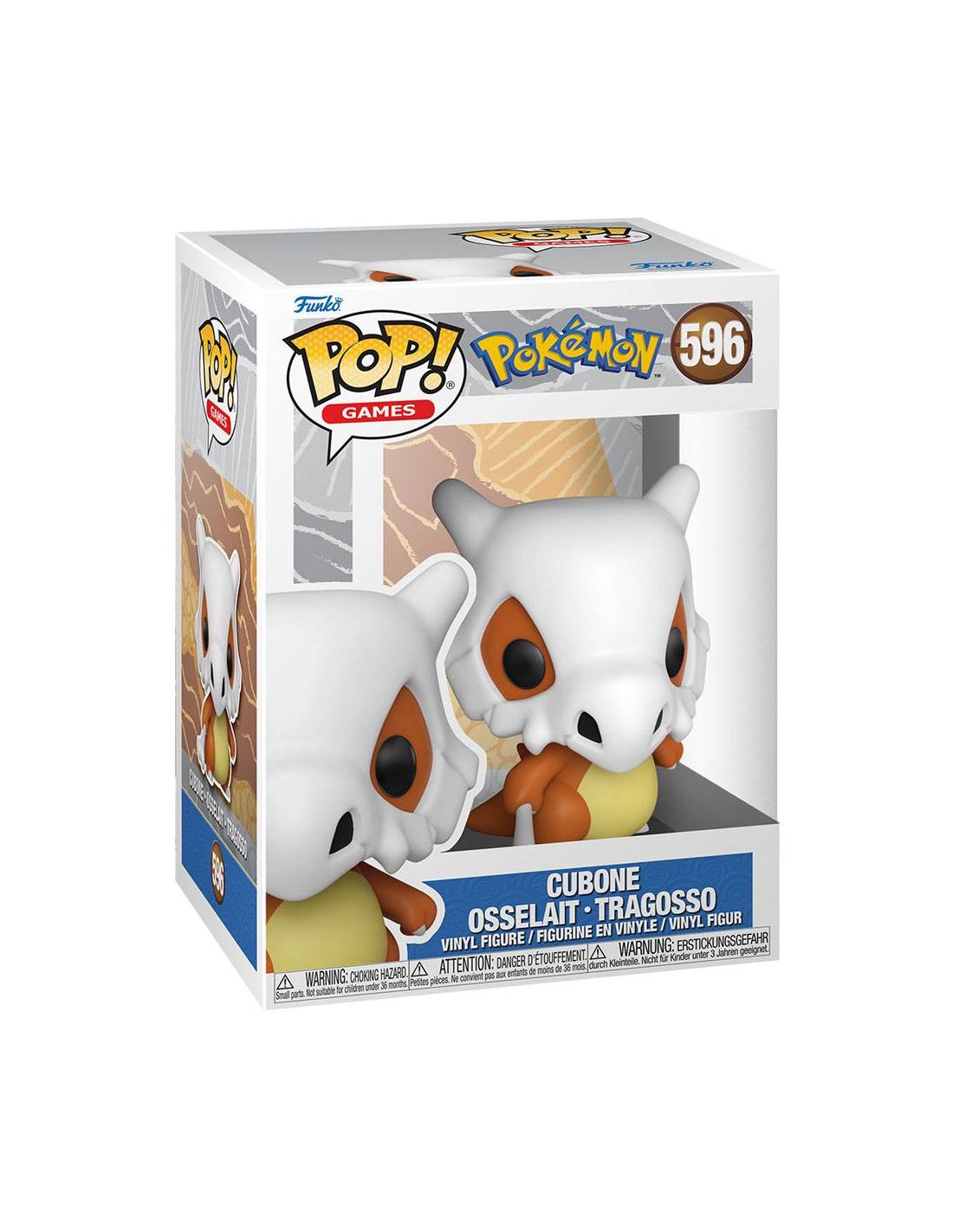No te pierdas esta divertida figura Pokémon Funko Pop Cubone 596 del genial Pokémon Cubone, un regalo friki espectacular para coleccionistas de Funko Pop Pokémon.