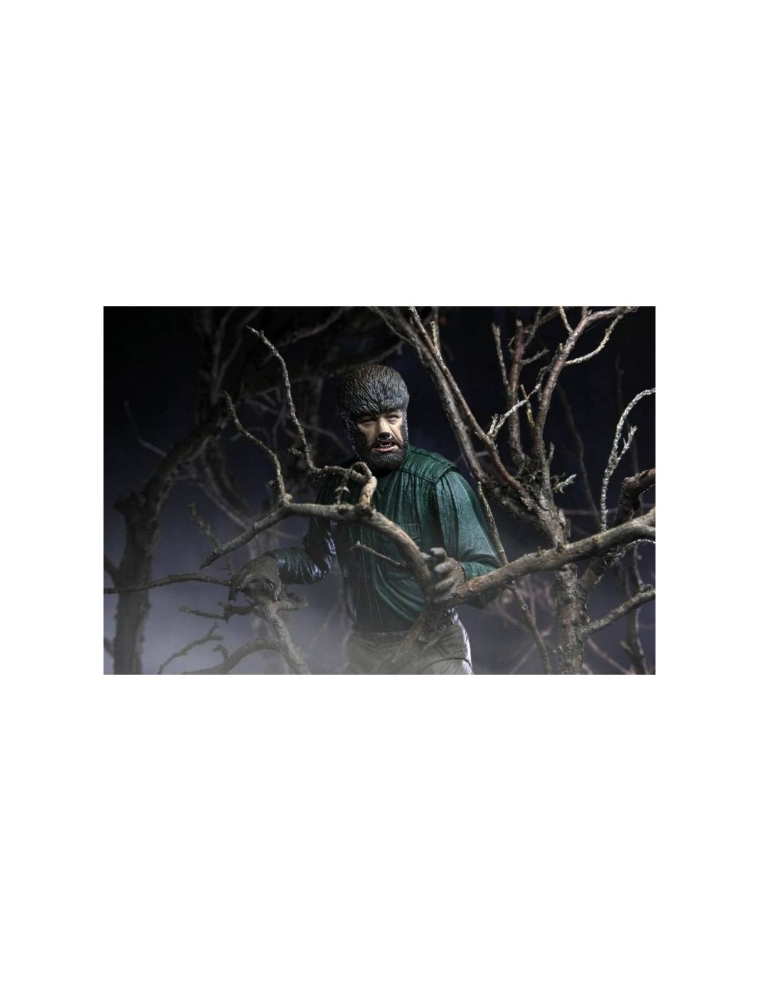 La historia de la película es conocida por todos: Larry Talbot, interpretado por Lon Chaney Jr., es mordido por un hombre lobo en un bosque y se convierte en uno de ellos. La figura representa al Hombre Lobo con todo detalle, desde sus garras afiladas hasta su pelaje desordenado, lo que la convierte en una pieza de colección impresionante.