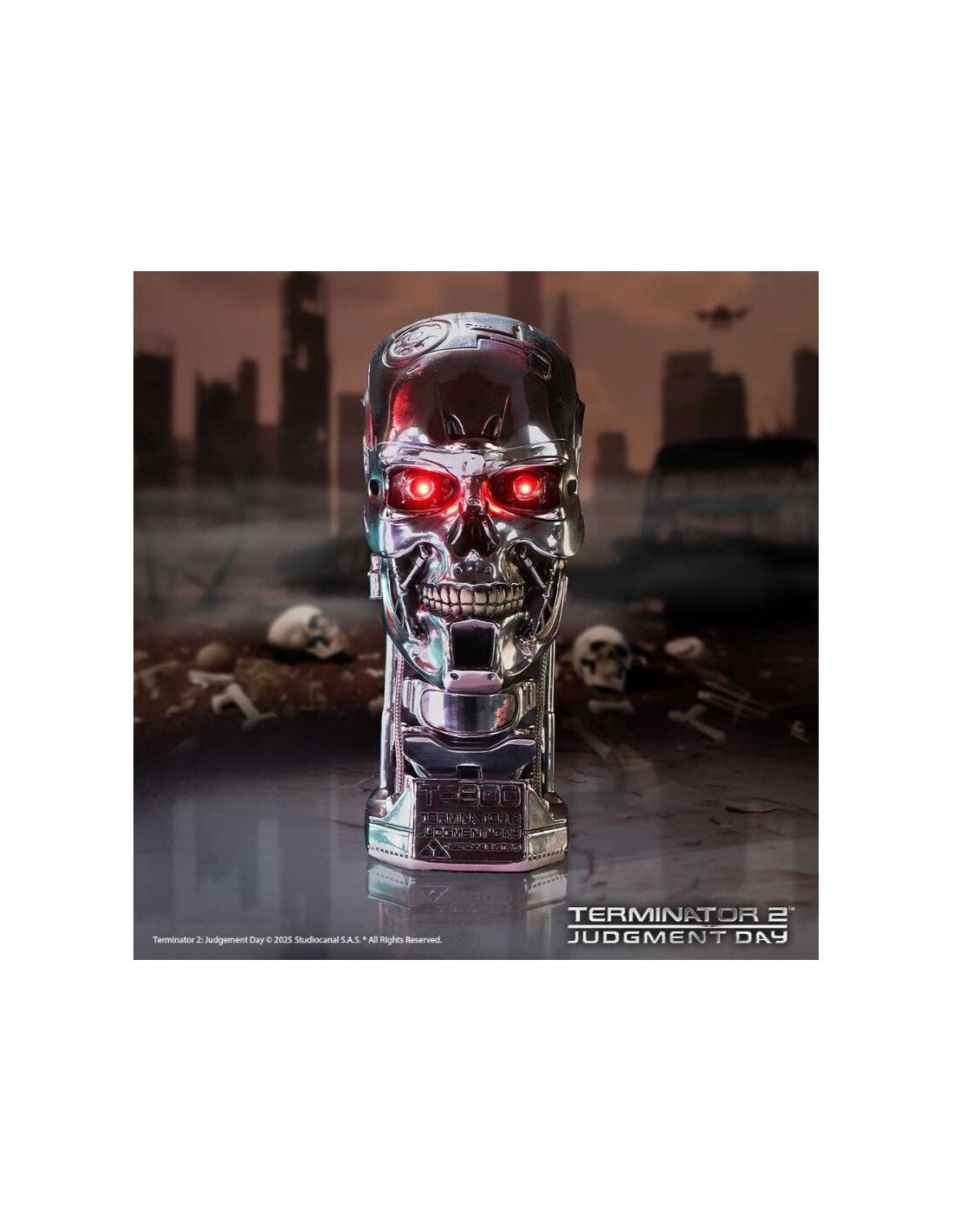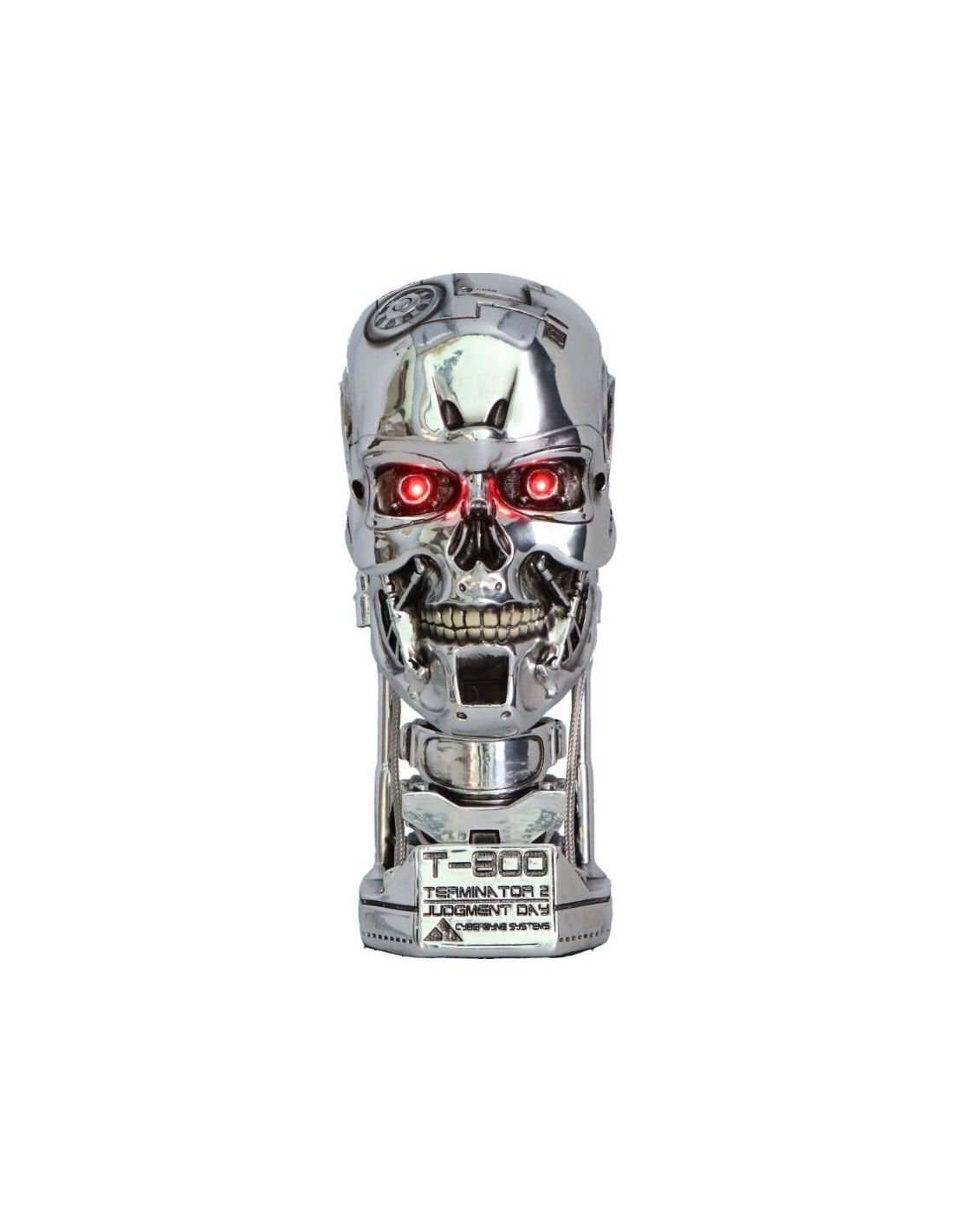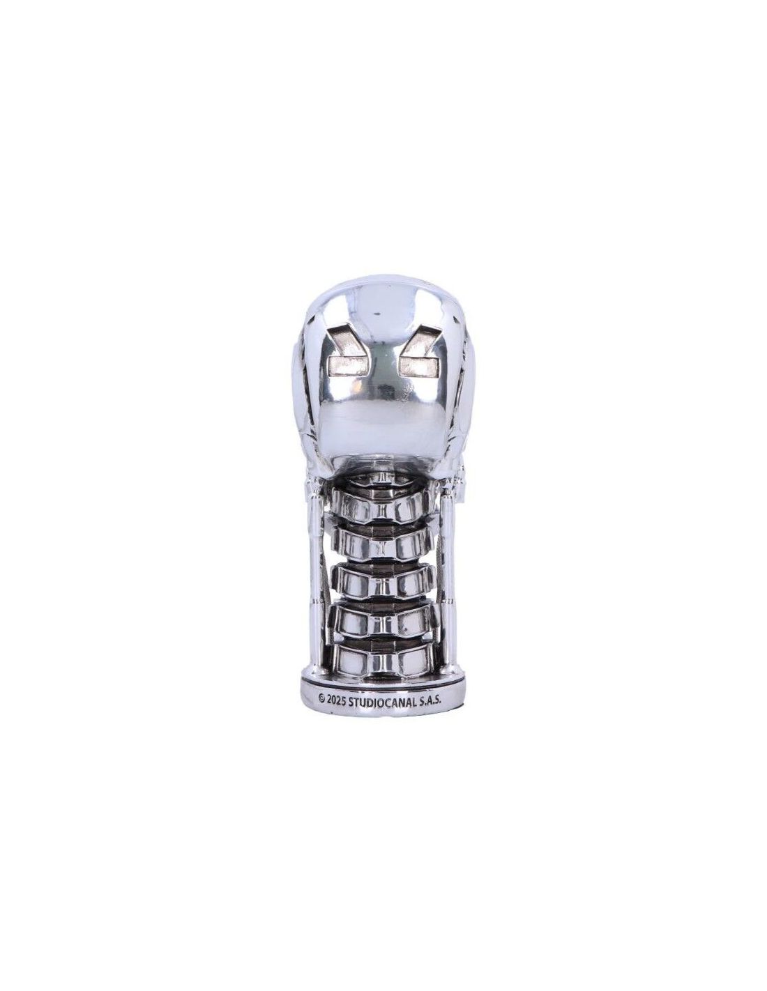 Descubre la Réplica Cabeza de Terminator T-800 con Luz LED de Nemesis Now. Una figura coleccionable detallada con ojos iluminados que reproduce fielmente el icónico endoesqueleto cibernético de la saga Terminator.