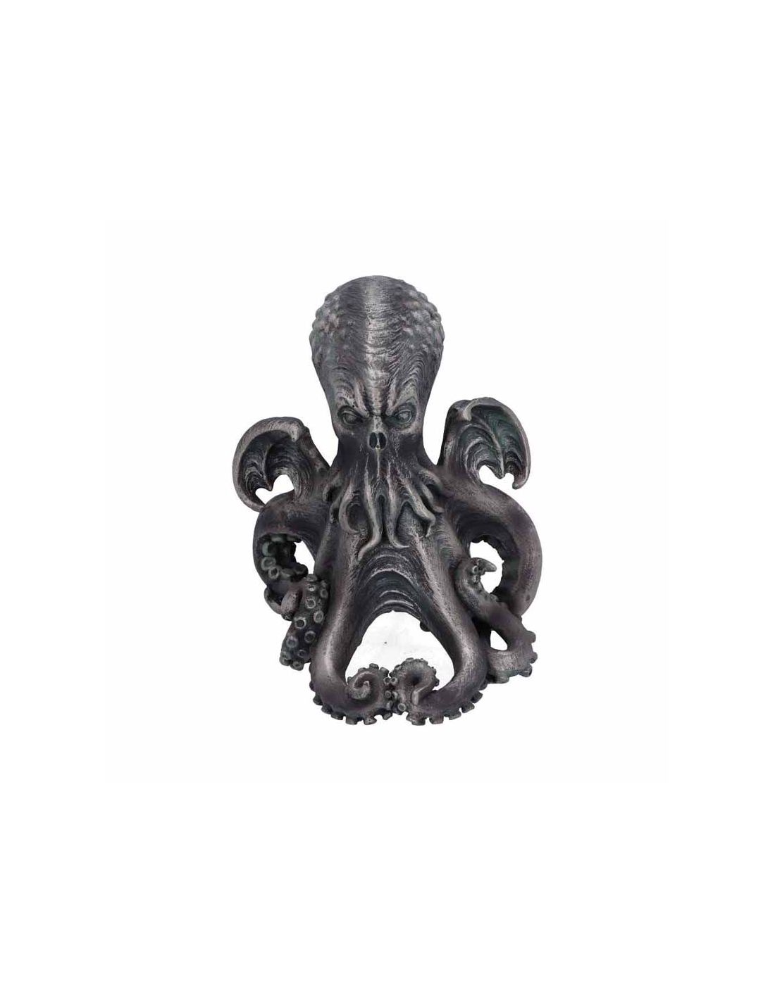 Descubre esta impresionante estatua decorativa de Cthulhu de 14,5 cm, inspirada en los relatos de H.P. Lovecraft. Una pieza de terror cósmico fabricada en resina y pintada a mano que cautivará a coleccionistas y fans del horror lovecraftiano.
