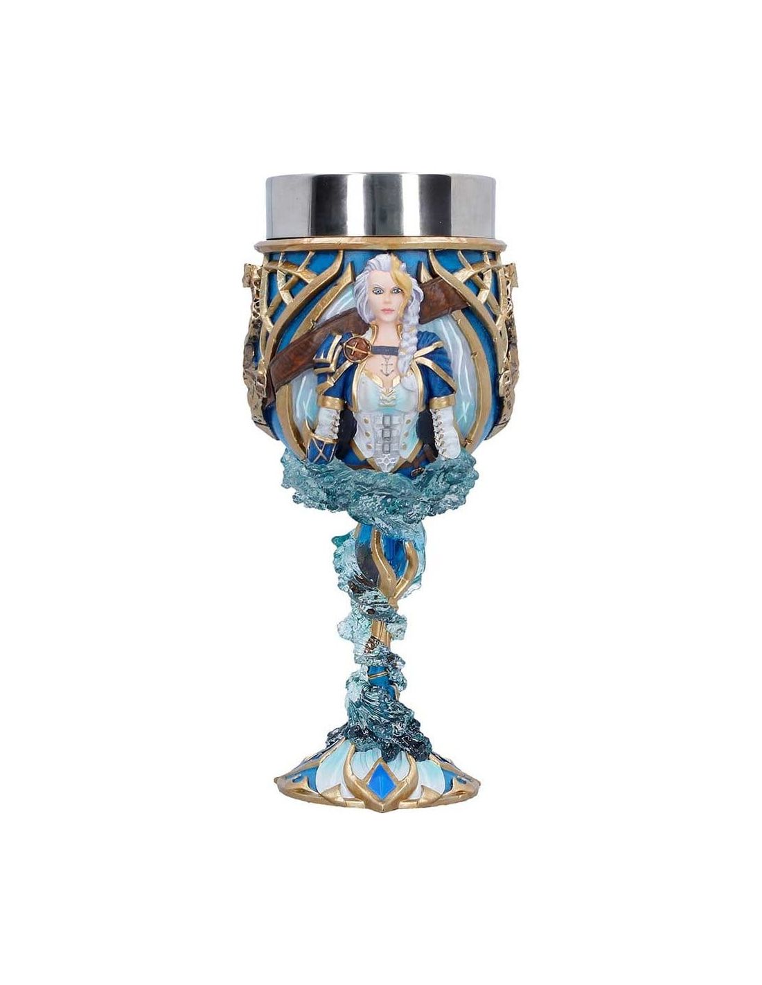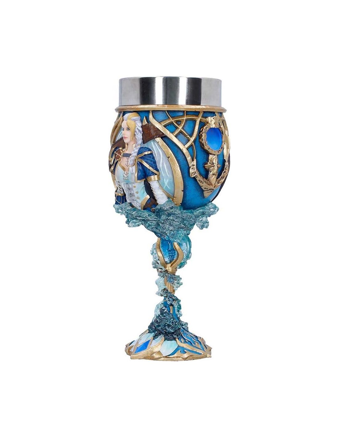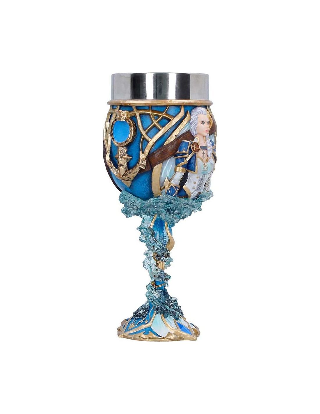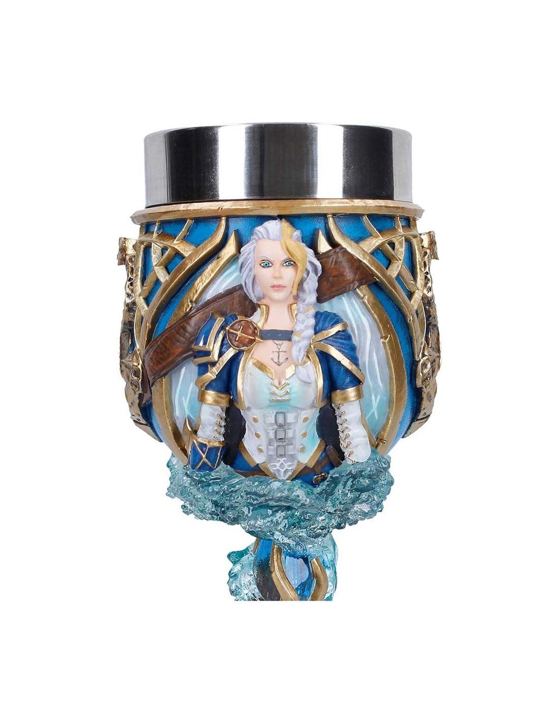 Este Cáliz Jaina Proudmoore de World of Warcraft es una pieza de colección fabricada en poliresina y acero inoxidable. Con un tamaño aproximado de 19,5 cm, representa un elemento emblemático del juego. Ideal para amantes y coleccionistas del universo Warcraft.
