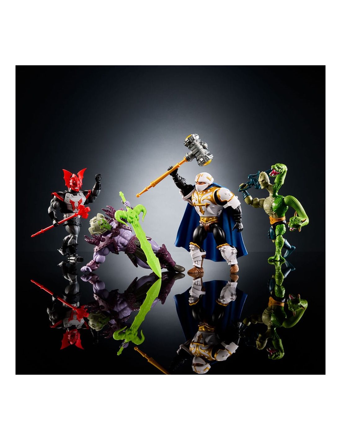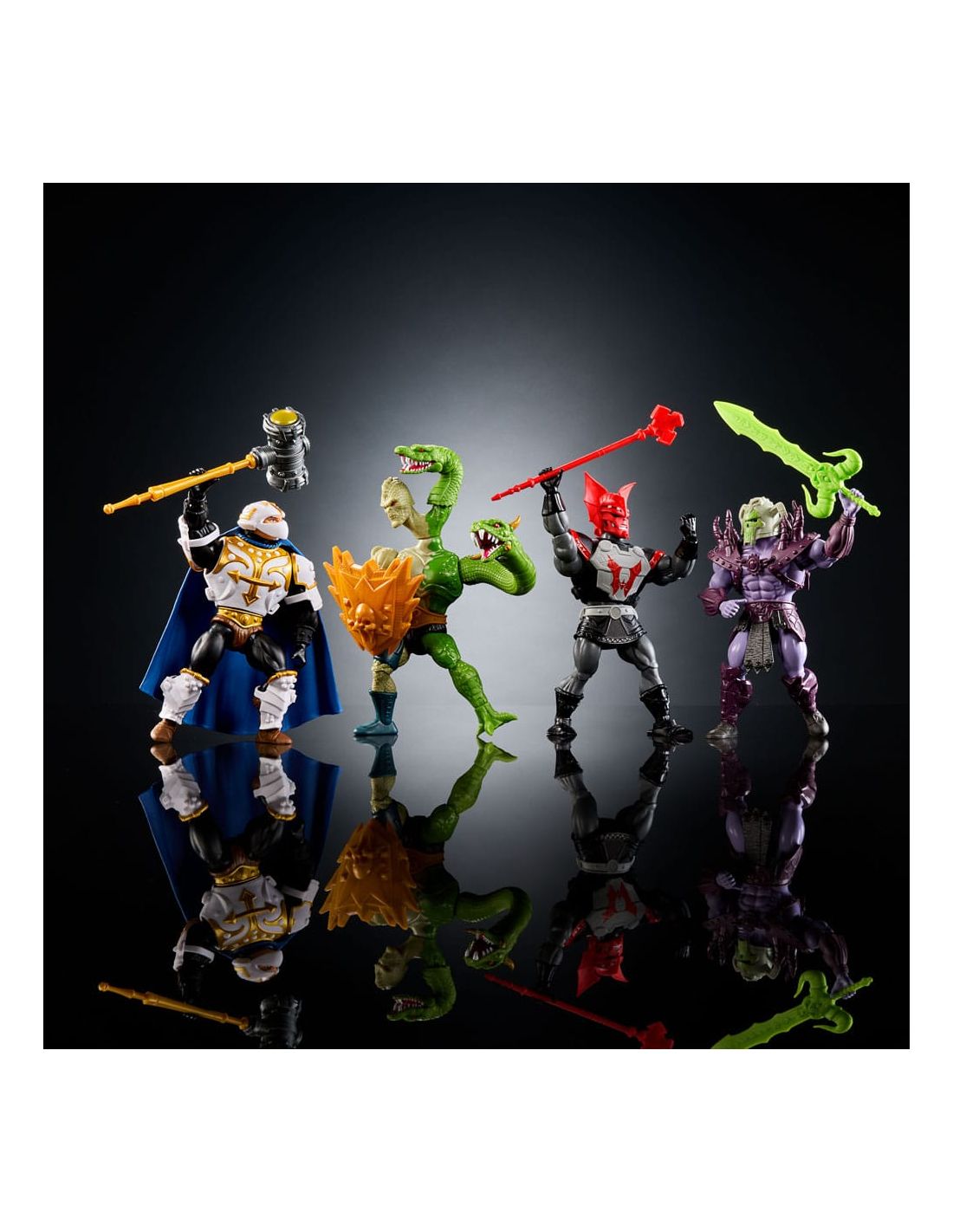 Este set es ideal para decorar tu espacio de juego, tu estantería de coleccionismo o como un regalo espectacular para los amantes de los Masters of the Universe. Ya sea para exhibir o para desatar batallas épicas, estas figuras versátiles se adaptarán a cualquier escenario que tu imaginación conciba, desde el Castillo Grayskull hasta el desolado desierto de Desolación.