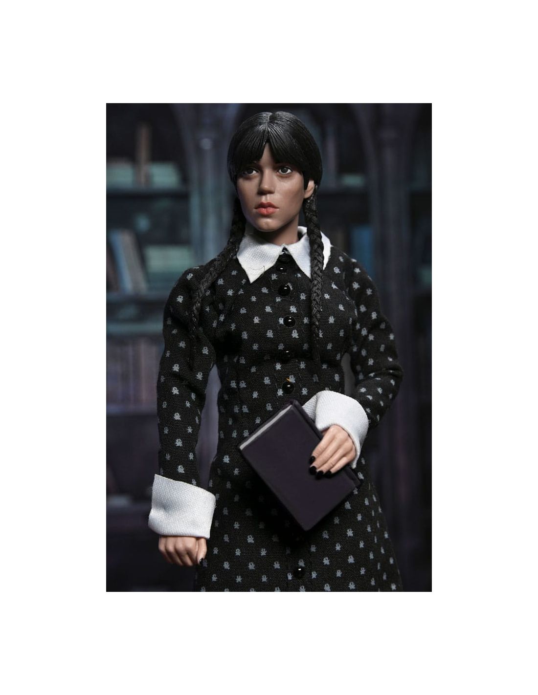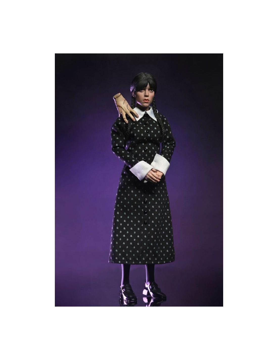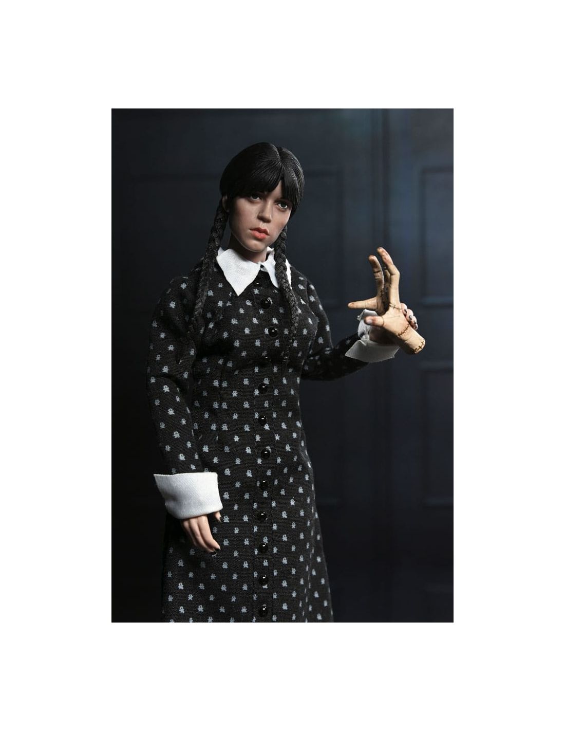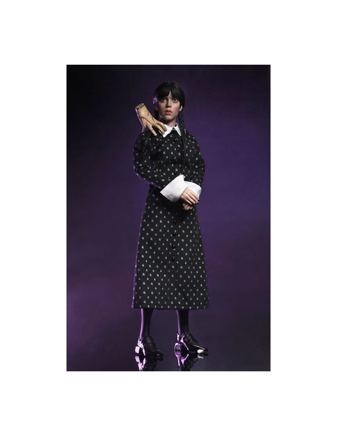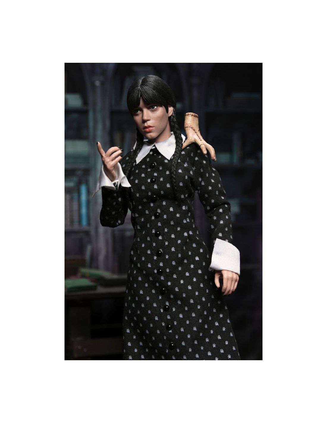 Con una altura de 20 cm, múltiples puntos de articulación y acabados detallados, es ideal tanto para exposición como para coleccionismo activo. Su diseño cuida cada aspecto del personaje: desde las trenzas hasta el patrón del vestido, reflejando fielmente la personalidad de Wednesday Addams.