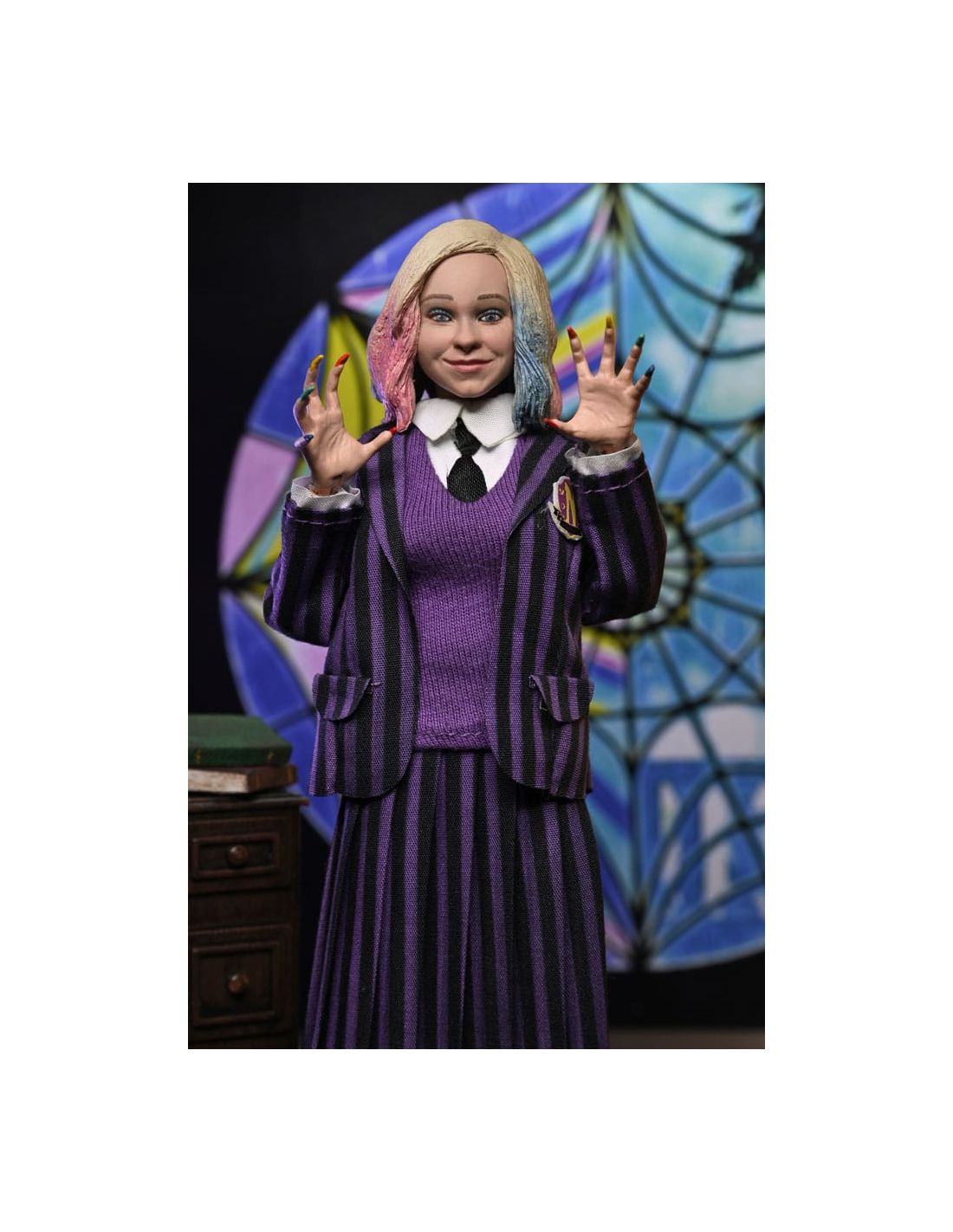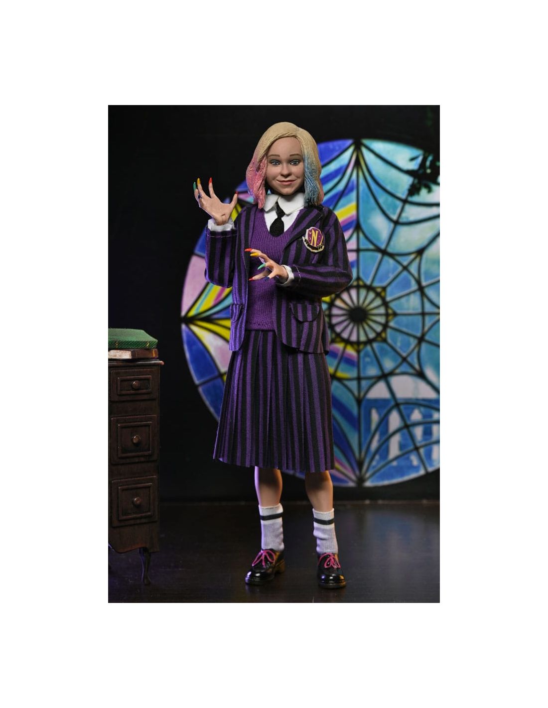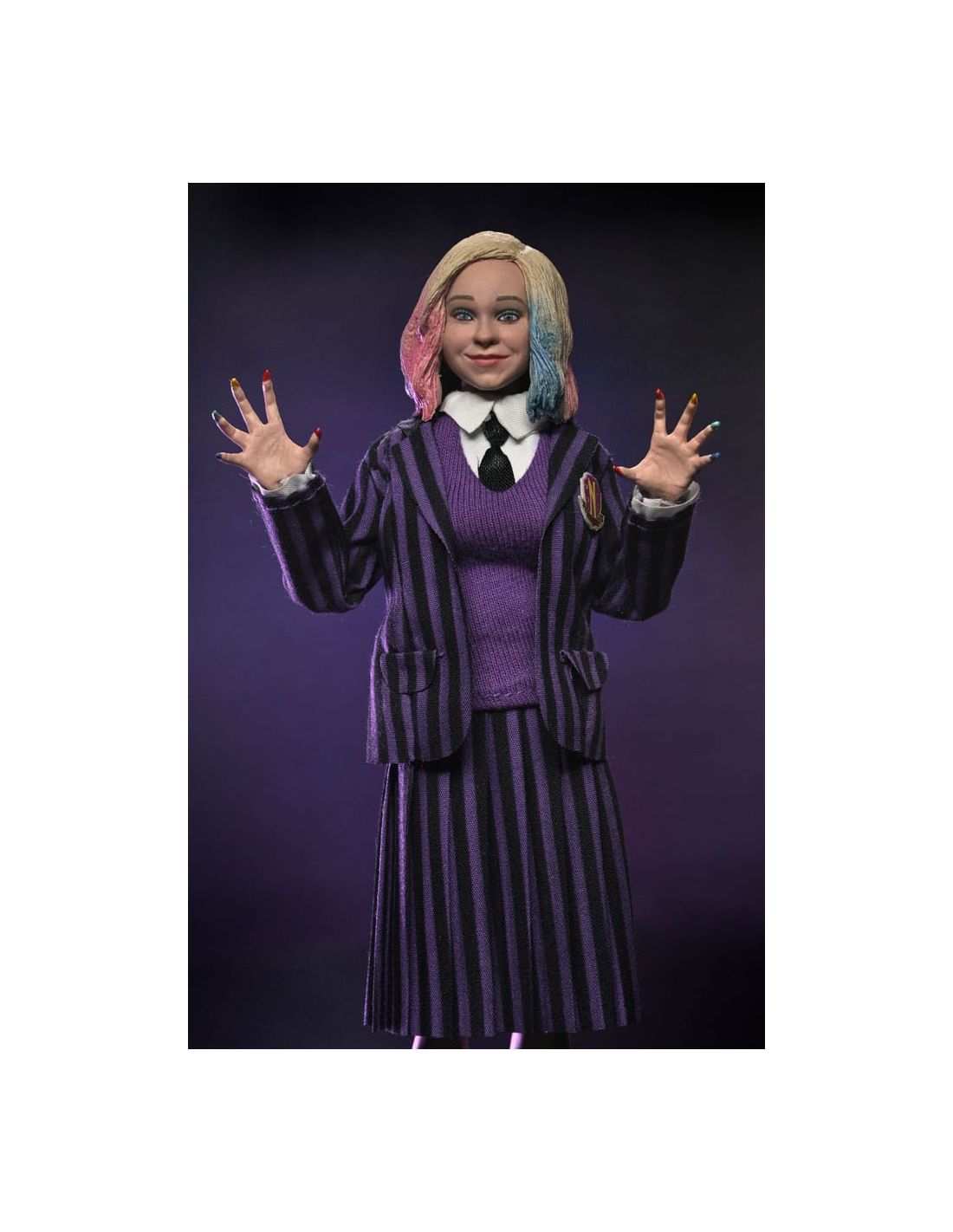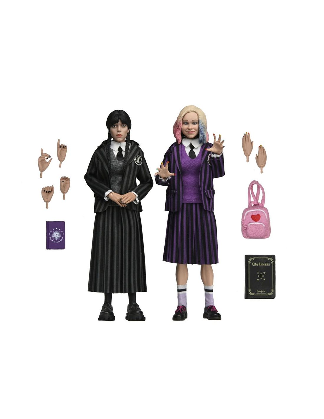 Sumérgete en el mundo de Miércoles (Wednesday) con este increíble paquete de 2 figuras articuladas. Disfruta de la compañía de Wednesday Addams y Enid, personajes icónicos de la serie, con un tamaño detallado de 20 cm.