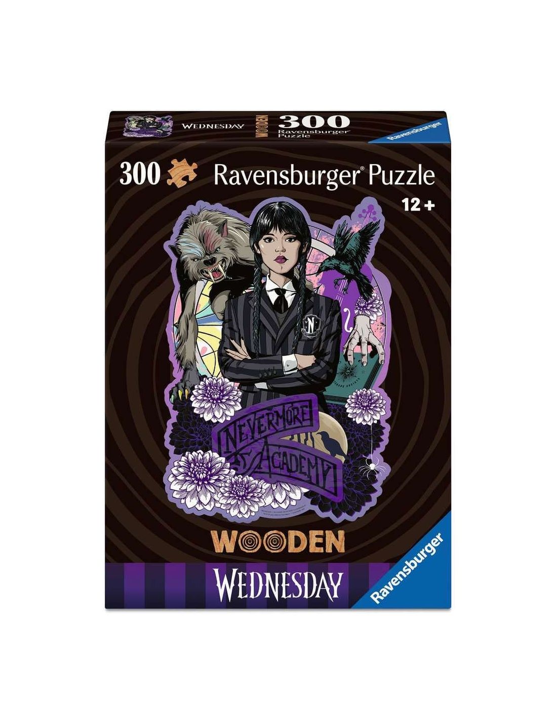 Disfruta de este elegante puzzle de madera oficial de Miércoles (Wednesday), con 300 piezas que combinan misterio, estilo gótico y calidad. ¡Un entretenimiento único para fans del universo Addams!