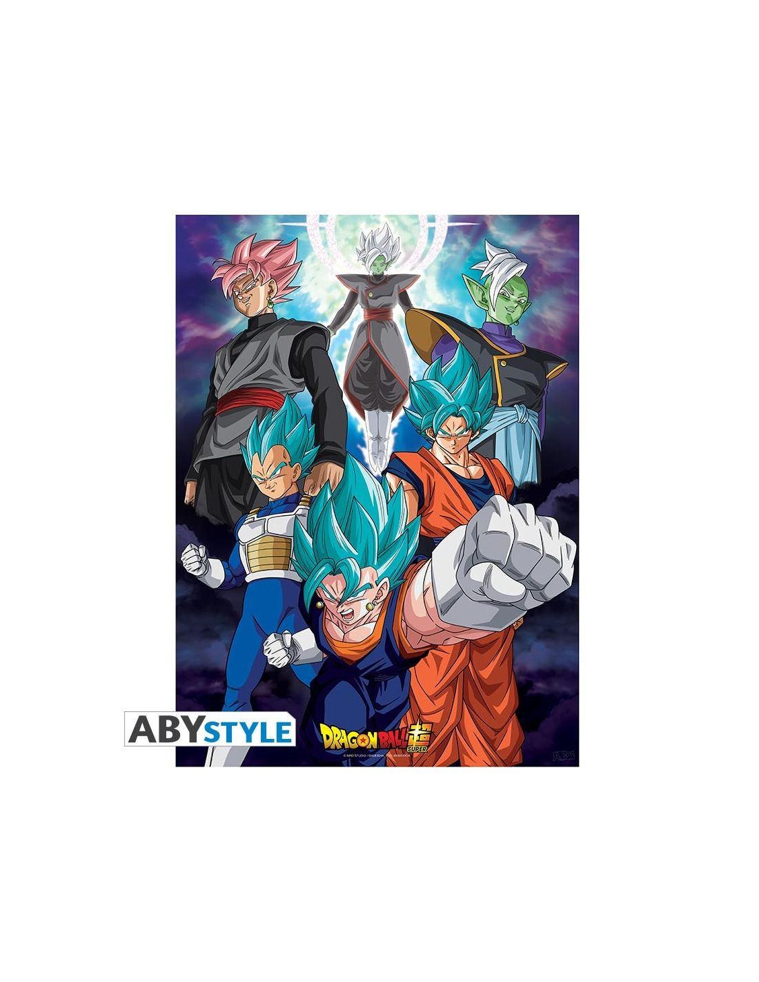 Póster Dragon Ball Super Fusion, con Goku y Vegeta y su fusión Gogeta, y Zamasu, Goku Rose y su fusión. Un póster friki genial como regalo a fans de Dragon Ball Super.