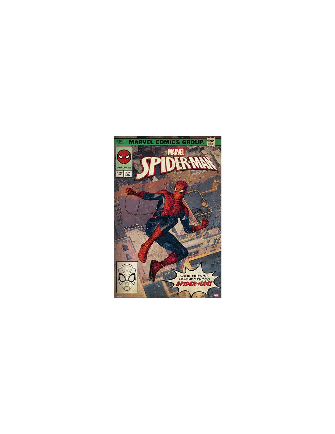 Póster Spider-man Your Friendly Neighborhood, que replica una portada del cómic de Spider-man estilo vintage. Un regalo friki ideal para fans del Hombre Araña y de los cómics de Marvel.