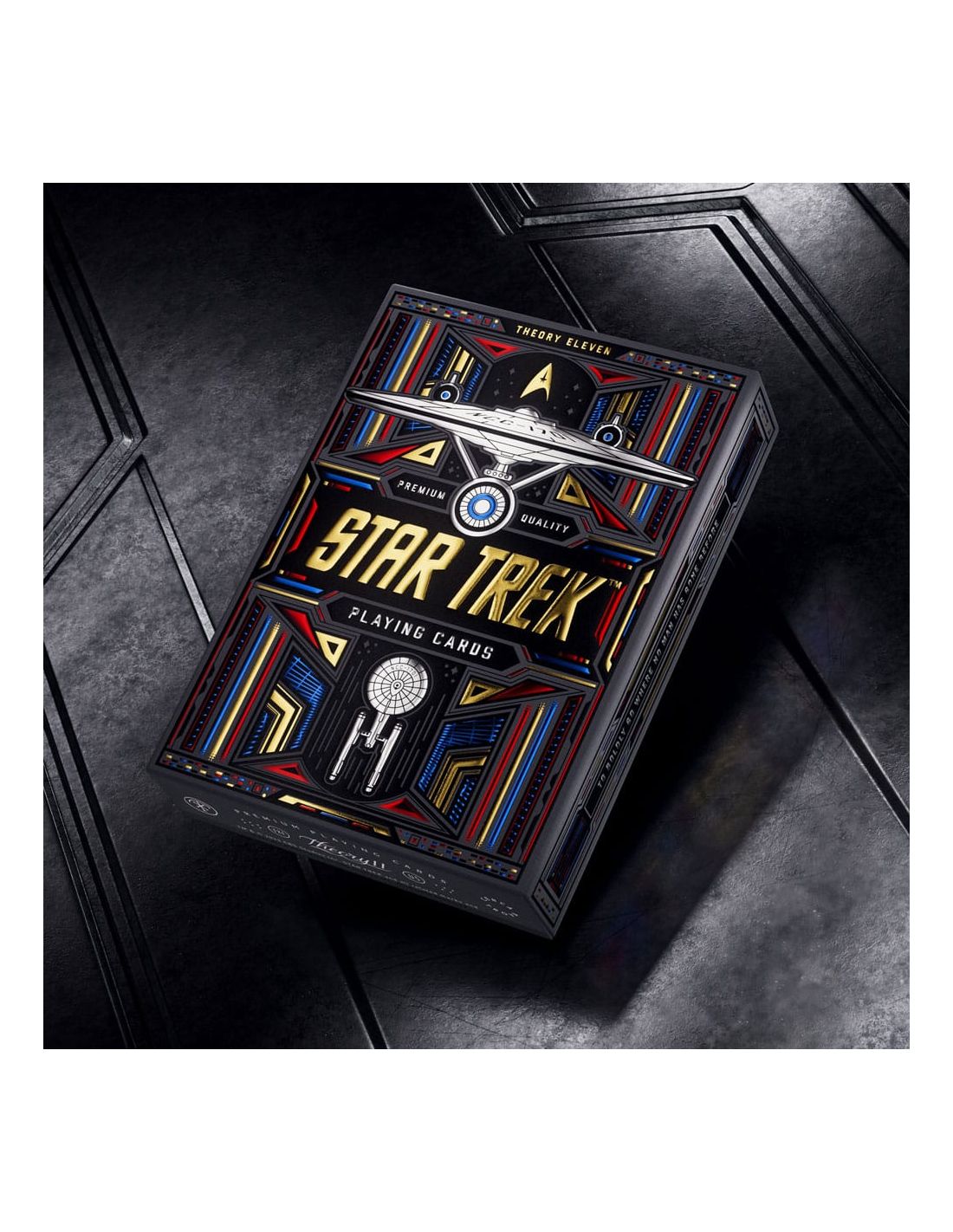 La Baraja de cartas Star Trek Dark Version es un viaje intergaláctico en forma de naipes, donde cada carta es una ventana al vasto universo de una de las franquicias más icónicas de la ciencia ficción. Fabricada por Theory11, esta baraja no solo es un homenaje a las aventuras de la Flota Estelar, sino que también es un artículo de colección que encantará a cualquier amante de Star Trek. Con un diseño que evoca la estética oscura y futurista de la saga, cada carta es un pequeño artefacto que transporta a los jugadores a las estrellas.