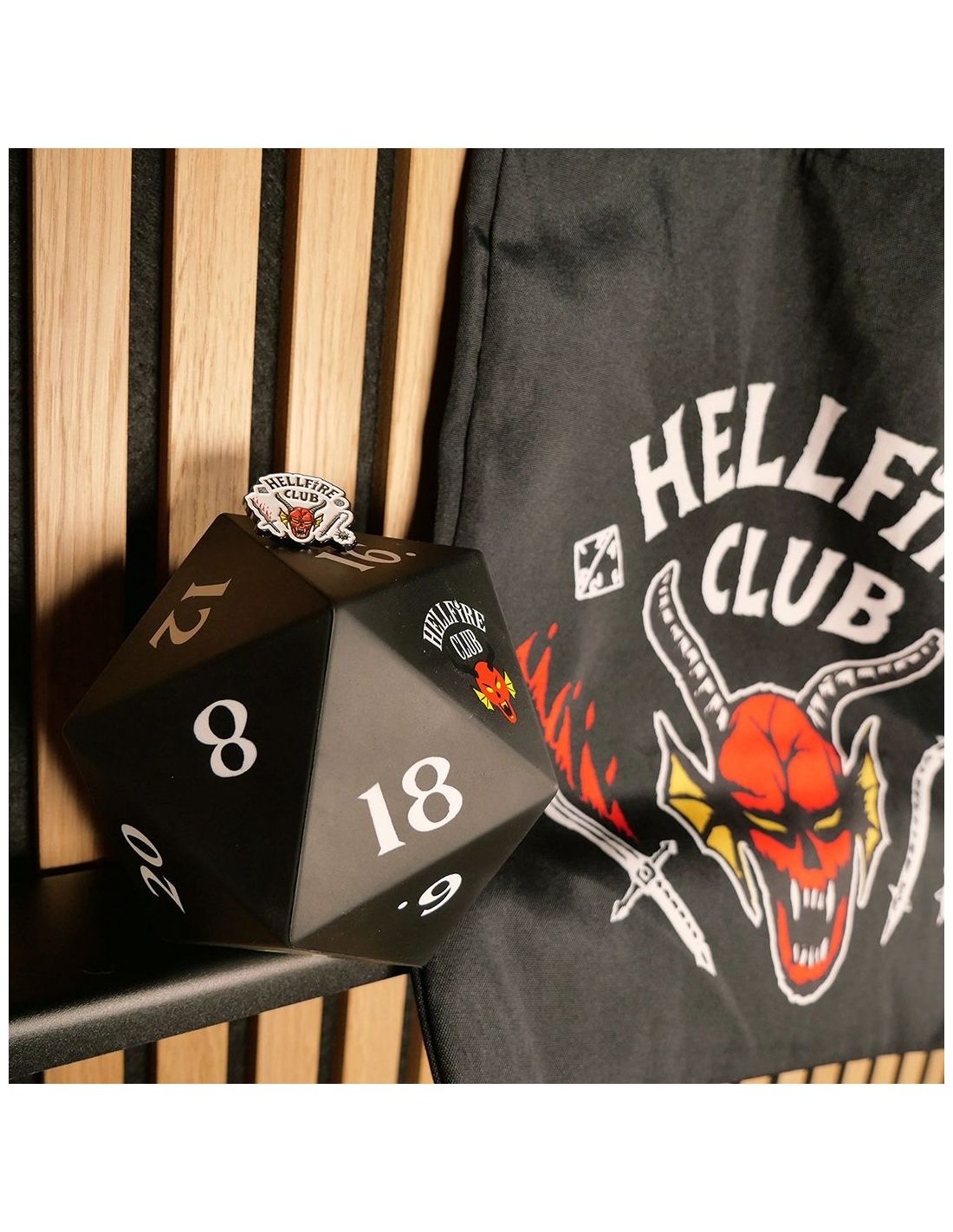 La bolsa tote Hellfire Club es ideal para llevar tus cosas al instituto, a la universidad o para tus salidas cotidianas, mostrando tu lado friki con orgullo. El pin metálico se puede colocar en mochilas, chaquetas o gorros, mientras que el dado squishy es perfecto para liberar tensiones mientras recuerdas las épicas partidas de D&D de Eddie Munson y su banda. Tanto si coleccionas merchandising de Stranger Things como si buscas un detalle original para regalar, este pack tiene todo lo que necesitas.